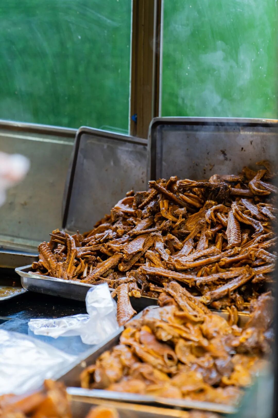 无论周几,只要是在盘飧市的窗口都是排队的现象。从窗口经过,香香糯糯的卤味轻而易举的就占据了嗅觉的主场,买一份品尝,卤汁恰到好处,不油不腻,卤肉劲道有弹力。
