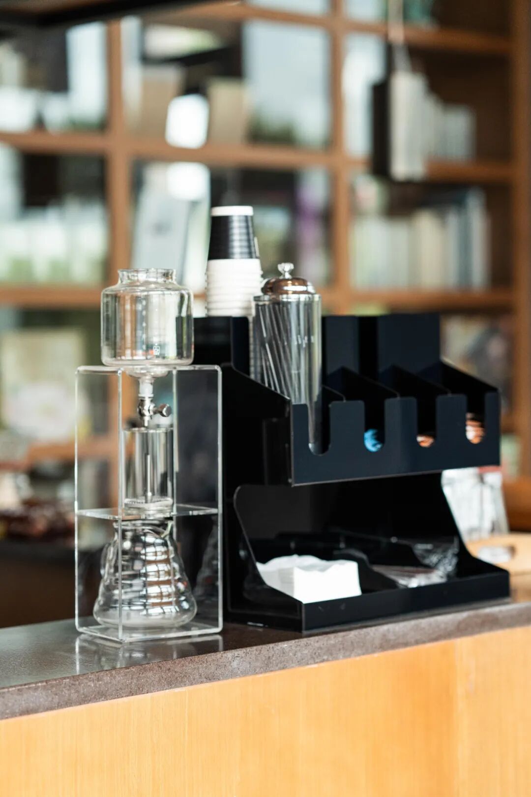 咖啡与阅读的空间是分隔又融合的,既可点上一杯饮品带入图书馆中饮用,也可选一本心仪的读物回到咖啡店里阅读,同样的组合,在不同的空间中却有完全不同的体验。