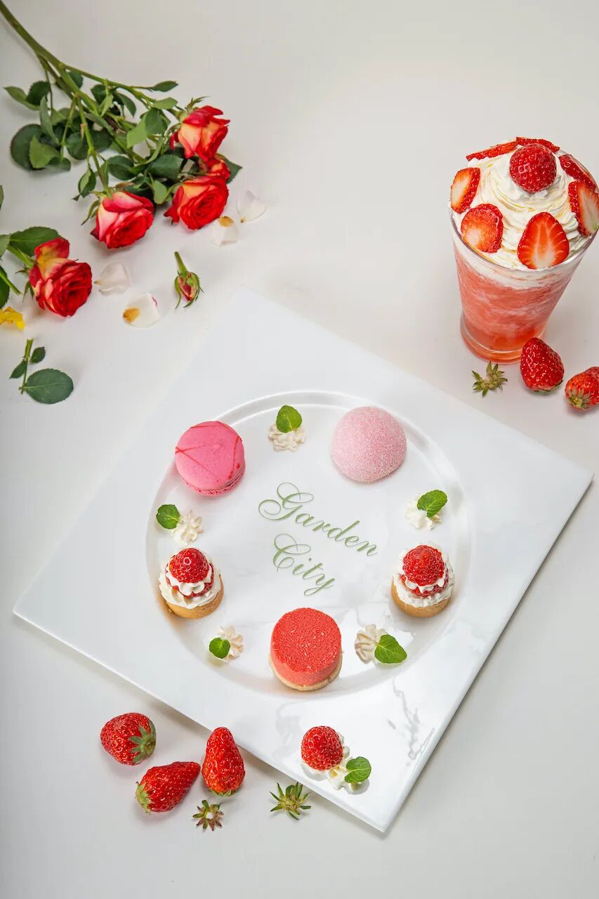 与饮品搭配的,还有由5款草莓点心组成的“草莓限定下午茶”。