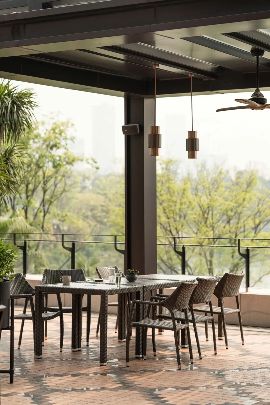 每当阳光明媚的天气,大家都会点上饮品,坐在室外的座位上,或无事闲聊,或畅谈工作,不经意的抬眼间,湖光水色尽收眼底。