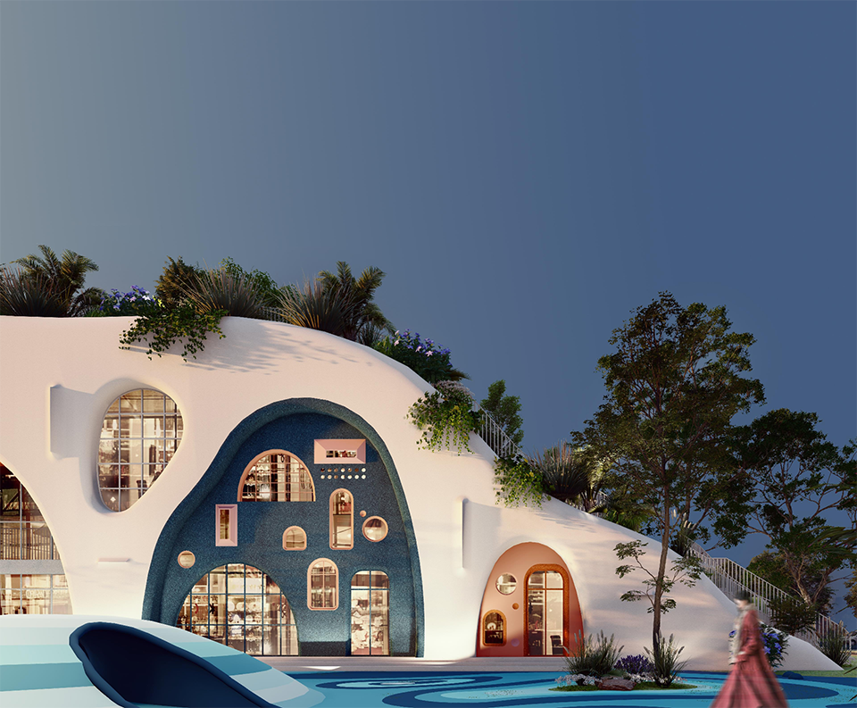 色调、材质和周围的生态环境巧妙地融合在一起。内部的流线与尺度配合也精准娴熟地拿捏到位,大落地窗的视野,以开放的态度,跟自然环境对话。