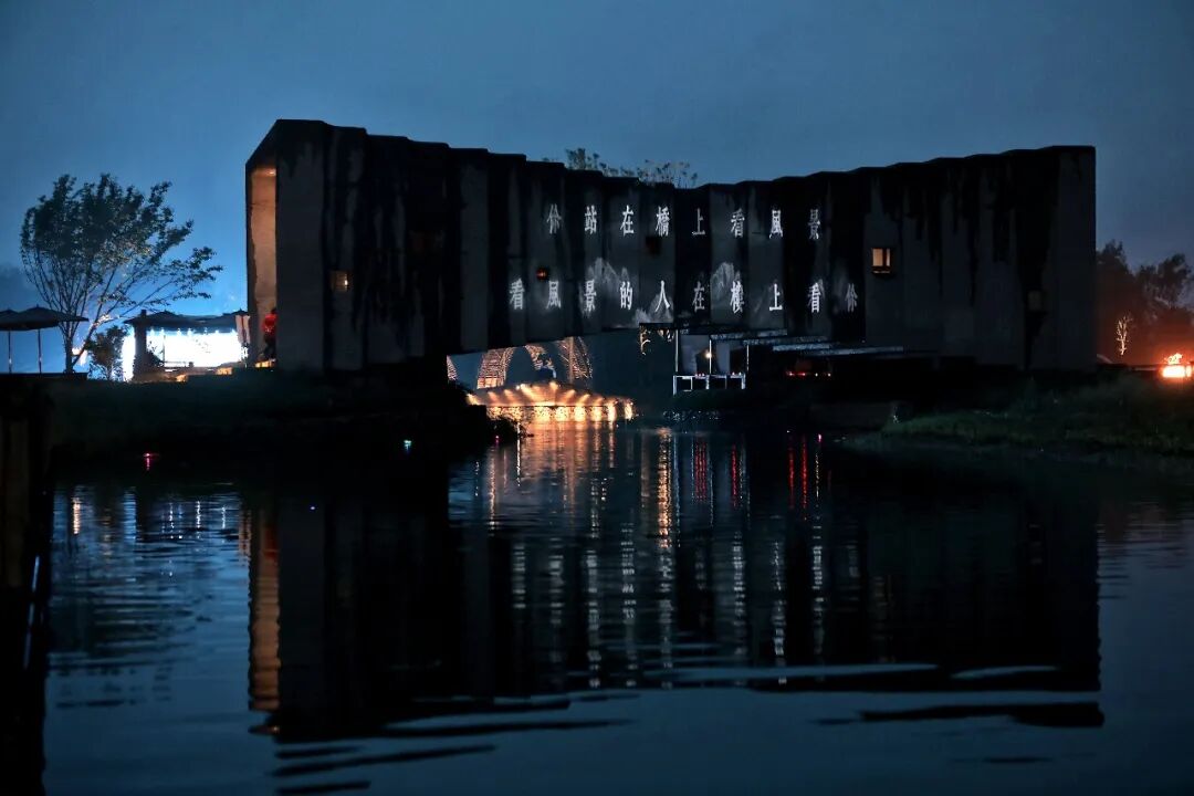得益于丰富的场地,诗里田园每周六上午将在河道尽头举办传统的打渔活动,中央的稻田舞台和铁花秀场地,则用于晚上举办的民谣音乐会和铁花秀表演。