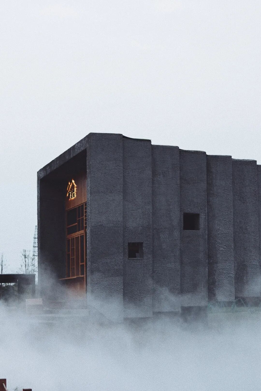 建筑三分之二的空间用作酒馆,剩下的空间用作走道,弯曲起伏的“桥身”让空间具有了有趣的变化。而少修饰的墙体上,错落地散布着方孔,光线透过方孔洒下,形成斑驳的光影。而人透过方孔又可以站在桥里窥探风景,一股诗意的情调不言而喻。