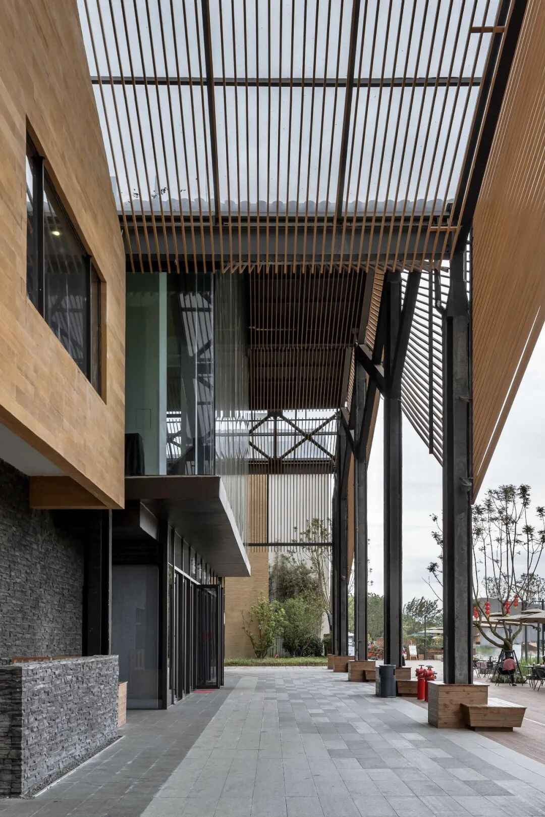 但诗里田园,并不想在自然里造一个乡土味十足的场所满足城市人的猎奇心理,也不跟从大流将一个时髦的人工景象“搬”到郊外,而是利用本有的条件,将田园风光与现代空间结合起来,可谓在城市味和自然味之间找到了平衡。