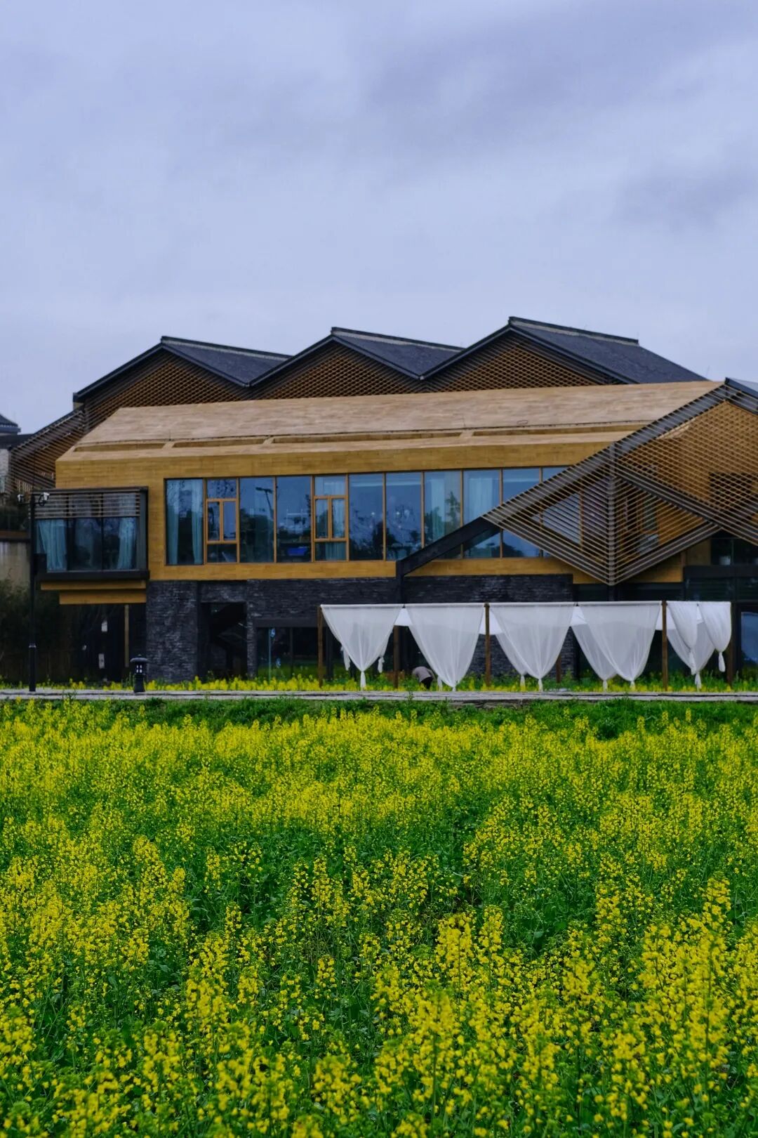 北侧的大田会跟随季节的改变而上新农作物,不论是春冬季的油菜花,还是夏季的水稻,都是沁人心脾的风景。