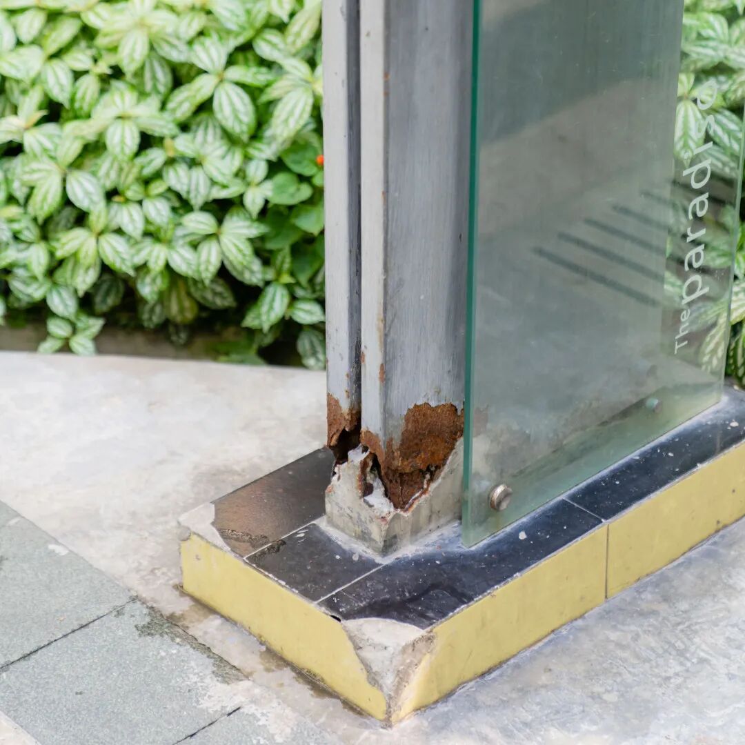 另外还有一些小区内部还存在架空玻璃出现破裂、小区指示牌底座锈蚀等现象。虽然看似微小,但也是不容忽视的问题。通过细心排查,万科成都在老社区更新中尽可能修缮诸如此类的小问题,以提升人们的安全感和幸福感。