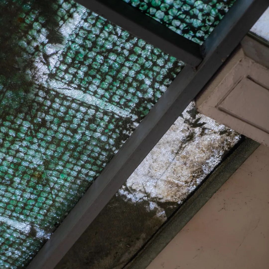 · 架空层玻璃破裂、指示牌底座锈蚀,摄影:雨婷©一筑一事
