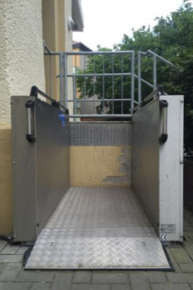 · 左:LED地脚灯示意图。右:旧集合住宅小区门厅入口处无障碍设施。图片源自网络