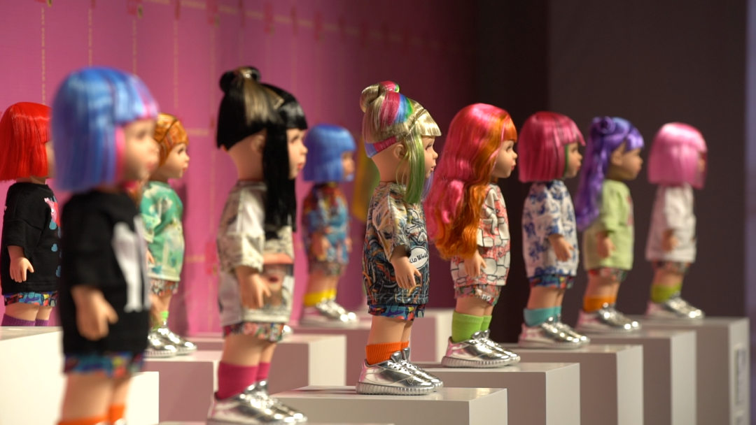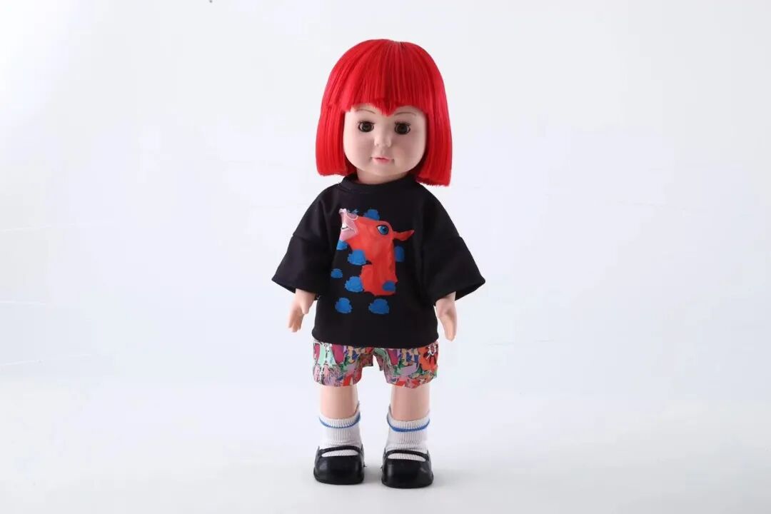 展览现场还展出了以她本人为角色、和设计师联名设计的潮玩艺术品C-Girl。其潮玩服饰上结合多位艺术家的作品,为角色形象赋予多重性格和故事,鲜艳、华丽,大胆撞击的色彩、不拘一格的设计形式,让C-Girl呈现出梦幻般的特点。