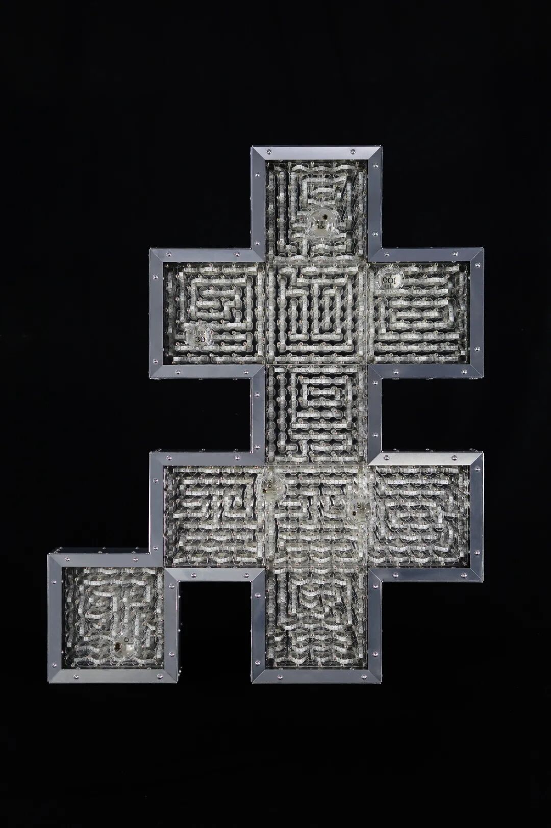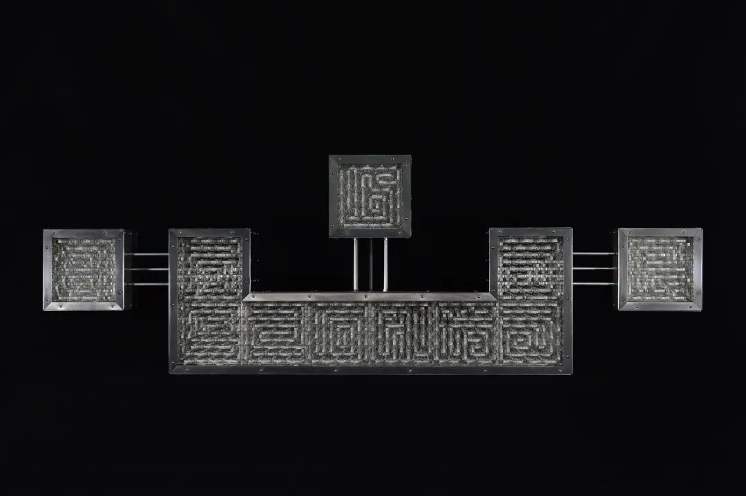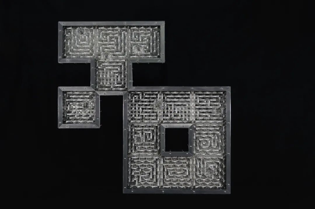 谜·心,铝合金型材、铝合金板材、亚克力板材等,2017。占研说,偏旁部首虽然带有特定含义,但同时也具有巨大的不确定性,可以说,它们具有谜一般的魅力。