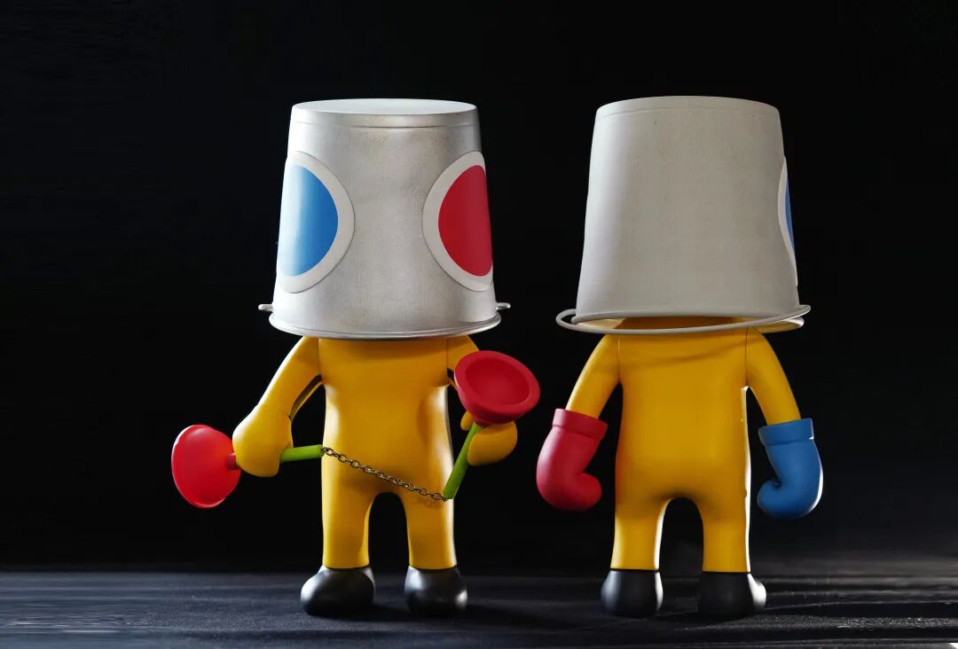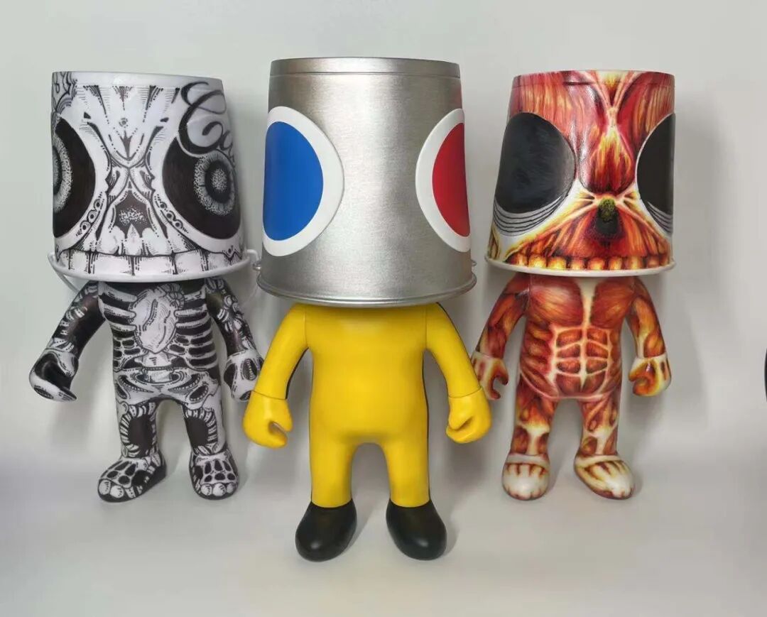 来自澳门的知名设计师黄纪石的“水桶王”(Bucket King),在潮玩艺术界也早已打出名气。他将多种潮流文化中的元素巧妙地设计在桶王身上,水桶的造型自带神秘感,留给人很多想象的空间去使它成为一个独一无二的角色。