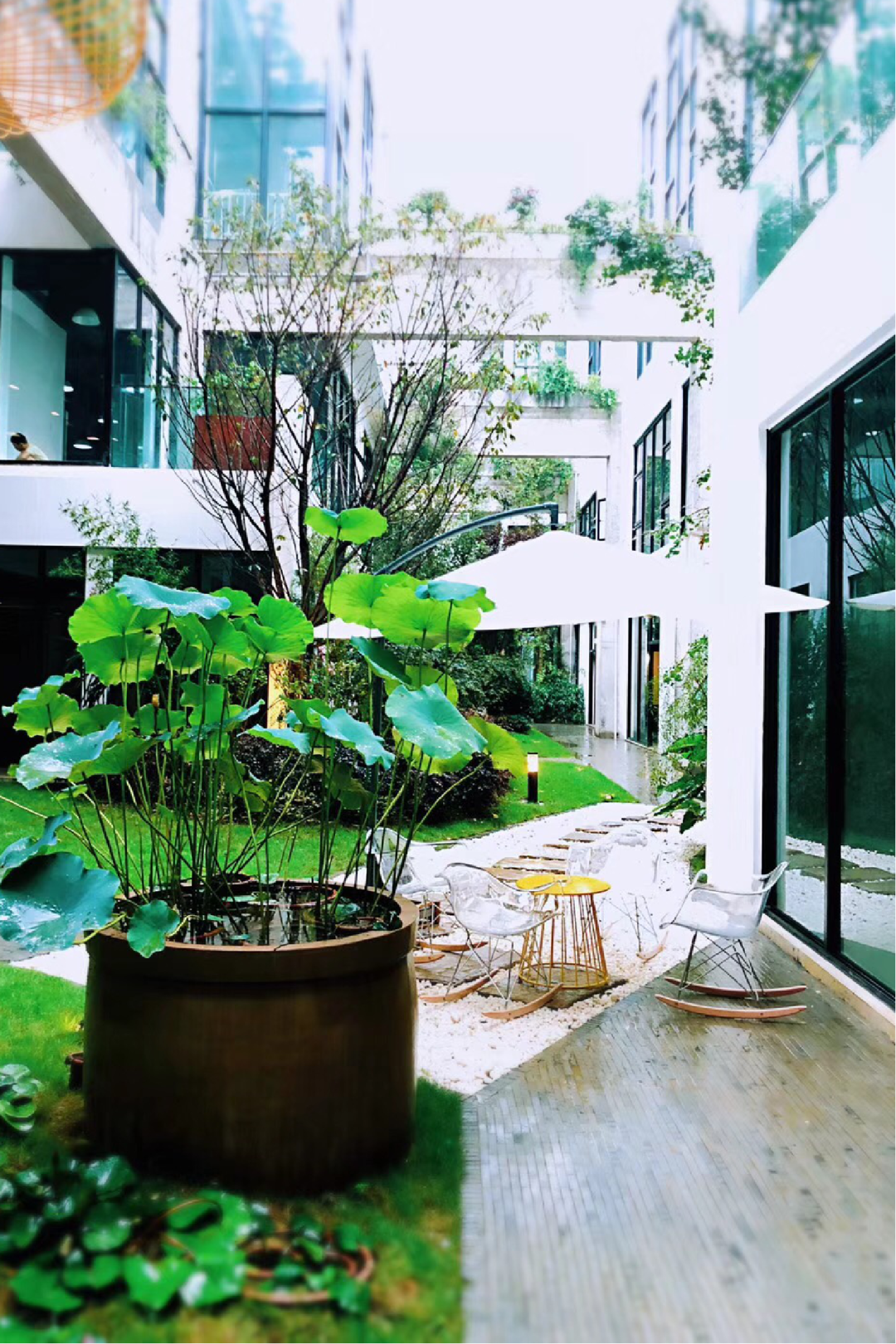 但来麓湖之后,我们有四个办公地点可以使用,每天面对自然,脱离焦虑,对灵感的激发是更有益处。在麓湖造“岛”,户外多点办公成了常态,“我们有50%的时间在户外工作,每天面对自然,绝大部分策划源自麓湖的生活基底,不装,有灵气,生活方式是判断工作环境的一个重点。”