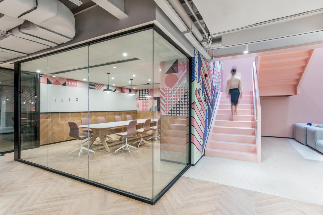 位于上海外滩的案例,也是失败的。想尝试新的设计方式,同时达到宣传效应,因此采用了比较夸张的色彩设计,最终也达到了传播度的目标,当时还入选了《家居廊》杂志的联合办公专题。但作为办公空间,其实不算成功,楼上的办公空间不足以支撑整个下面巨大的公共空间,所以比例稍微有一些失调。
