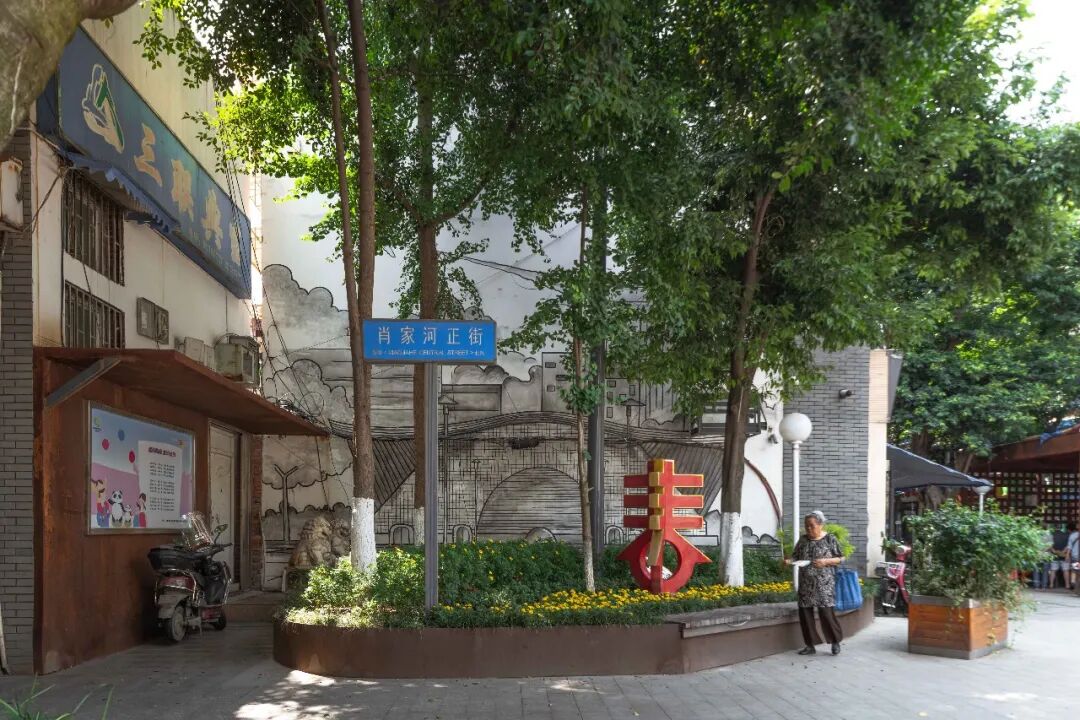2016年智领名见完成了第一个改造:肖家河正街步行街景观提升工程。熟悉肖家河的都知道,这里从一片农田慢慢演化成了一片街区,继而在2008年的时候,街道上还出现了响应奥运号召的主题文化建设。随着时间的变化,肖家河正街步行街景观也需要更新换代,政府当时也主导打造一个新型的、带有肖家河特色的肖家坊。