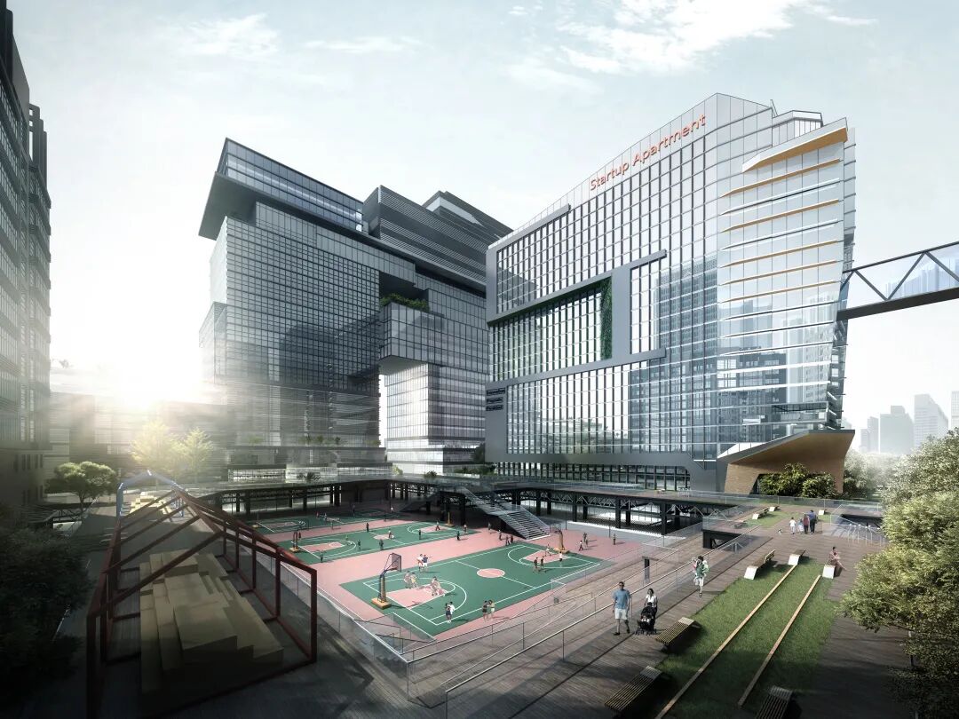 一方面满足高新技术办公场所的功能,另一方面激活园区用于商业经营的部分,“还有一方面,将整个园区作为一个社区去建设。所以里面会有体育场、亲子乐园、咖啡厅、快餐店等生活休闲空间。但在视觉上,我们并不想让它们显得‘另类’。”确实,随着时代的改变、人们需求的变化,办公园区也在朝着多元化、人性化的方向发展,智领名见也在功能上做出了应有的设计。
