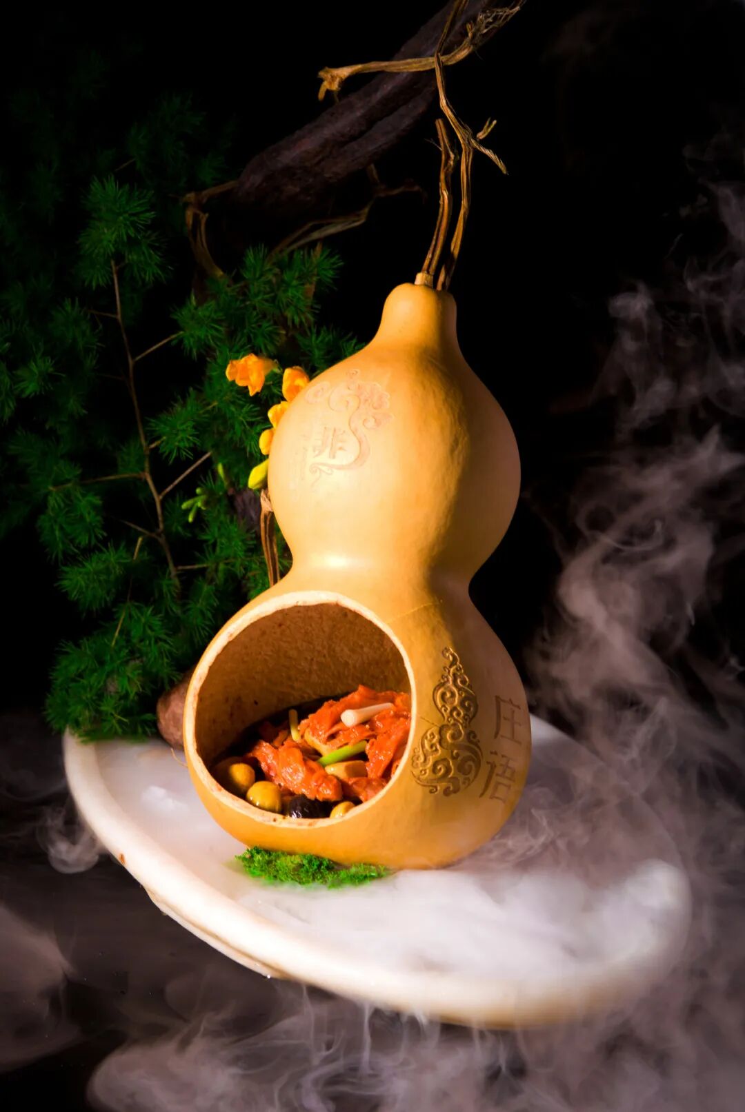 麓湖店是子非13年来首家分店,为配合美食岛的岛屿生活氛围,子非也在装修设计上加入了不少岛屿元素。菜品则是一贯的中国特色、道家意境,毛笔、象棋、葫芦等元素融入其中,一砖一瓦,一席一菜,皆是道家意境美学的融通。