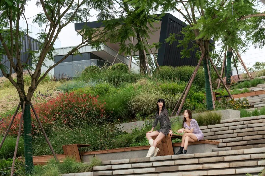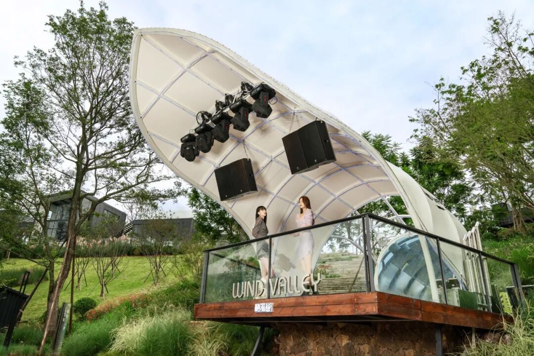 或宁静或躁动的音乐,都能从听觉上将人短暂地从现实中抽离出来,沉浸在音乐营造的氛围中。而麓湖·天府美食岛上就有一个极具设计感的音乐舞台——听风谷。