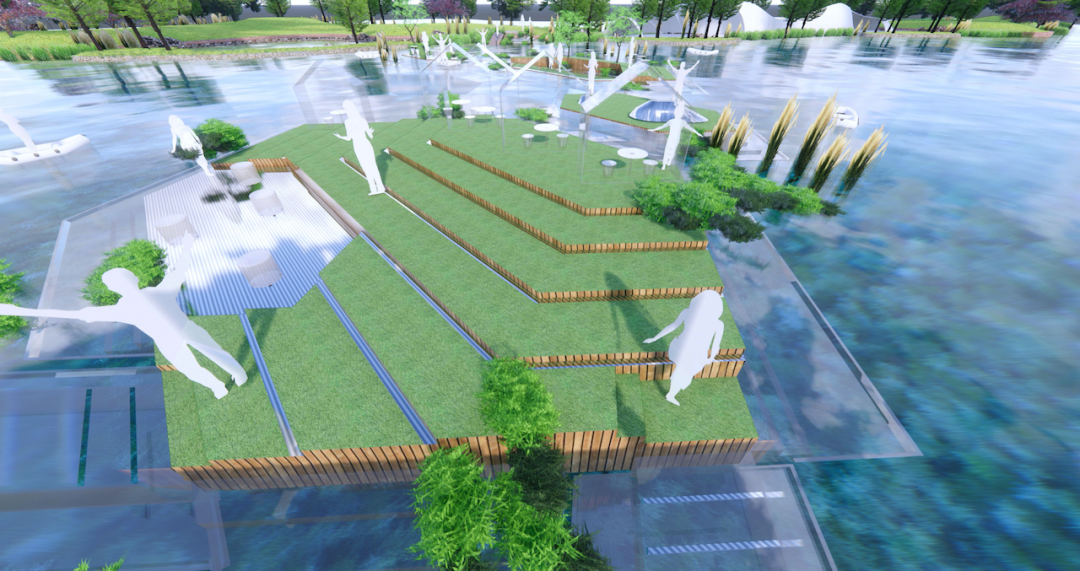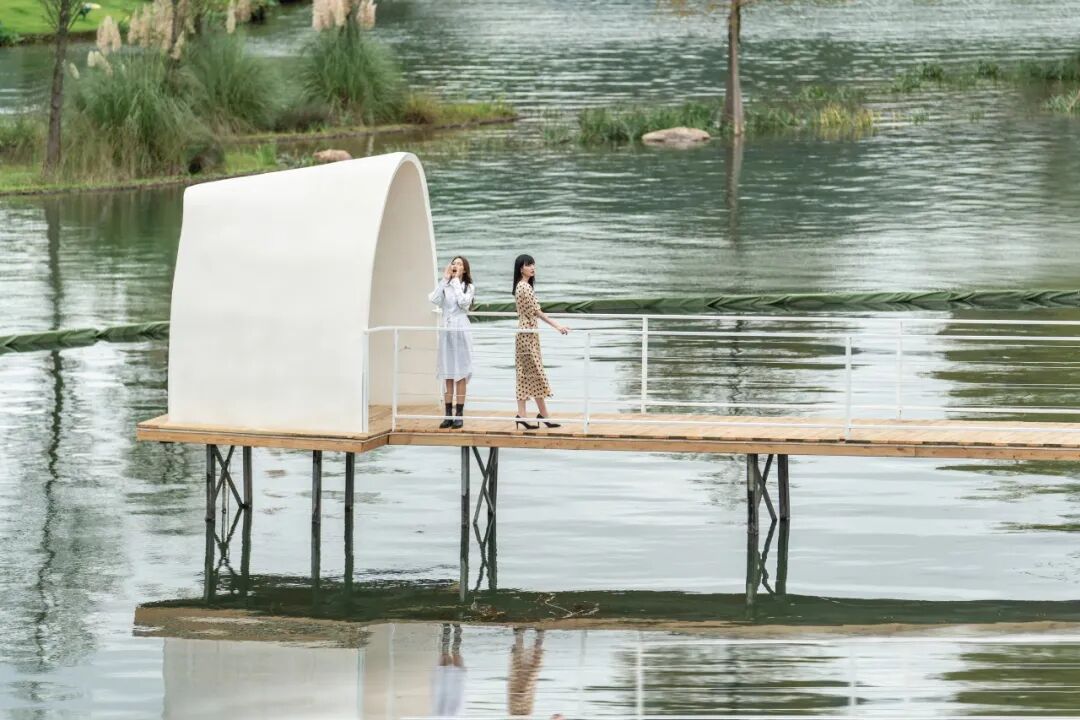 散落在湖中的漂浮小岛连接成水与岛生趣灵动的群岛空间,行走在水与汀渚间感受自由与暗涌的力量,阵风亲吻的惬意湖畔,阳光与月光在浮岛轮转交替,错落开阔的观景平台,处处皆是触及自然与内心的绝佳风景。