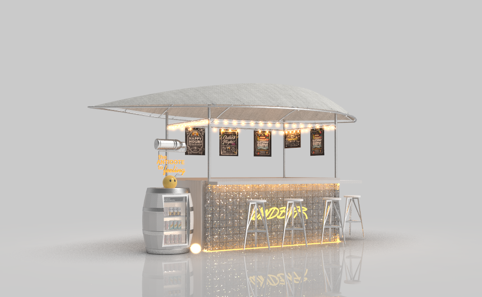 有了音乐,自然要有酒才畅快,听风谷不远处就有一个小型派对空间——听风吧,其功能与露天酒吧吧台类似。