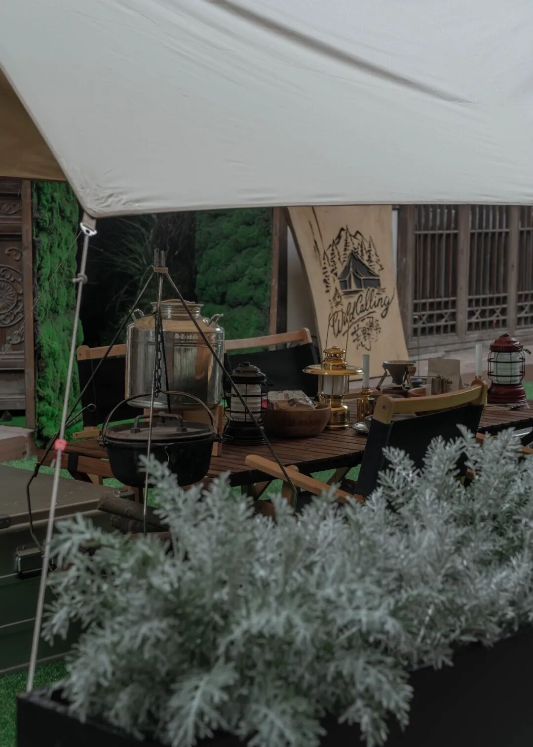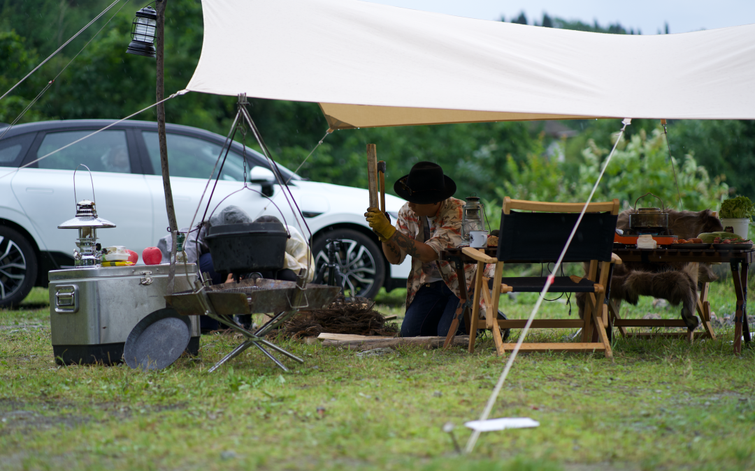 地面满铺苔癣,天幕帐篷下,是让人们着迷的“Glamping”典型式户外桌椅,上面摆放着高品质的露营器具:钛质杯具,咕嘟冒烟的咖啡壶,音箱,烧烤架,以及在微风中摇曳的烛光。而停放在一旁的小鹏P5,超大的后备箱足以轻松存放露营所需的物品与食物,当它敞开时,仿佛像伸开的臂膀,为久居城市的人提供幻梦的入口。