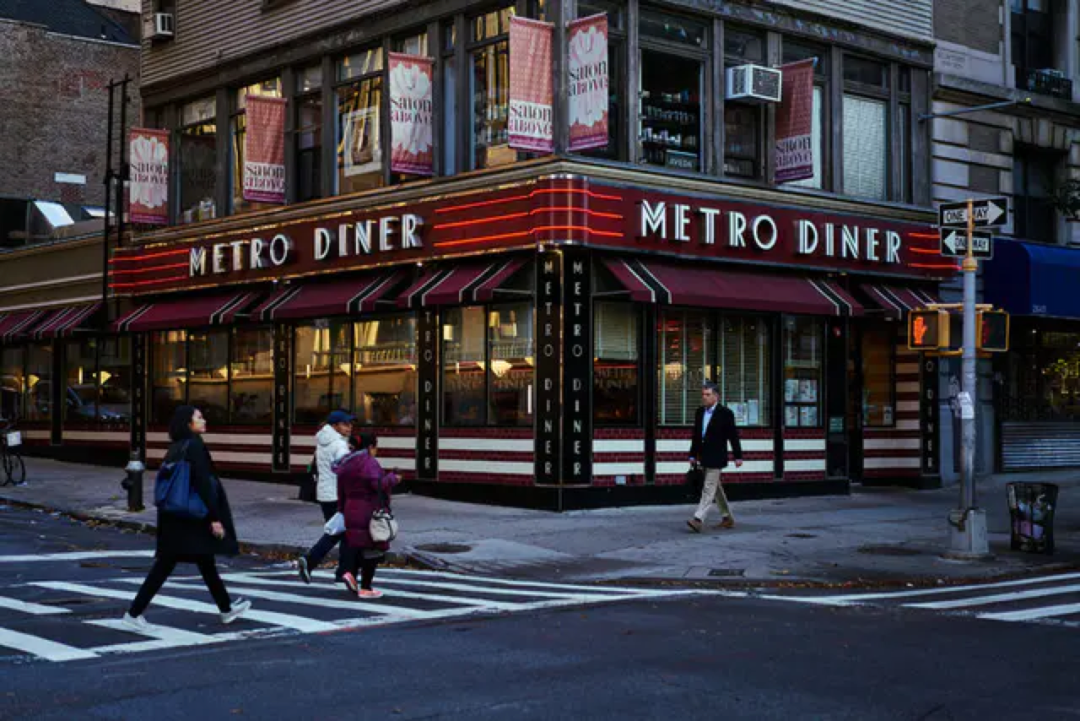 比如,对于纽约人来说,位于百老汇大街和 100 号大街交口处的美式餐馆 Metro Diner,自1871 年开业以来,便作为许多人的“第三空间”,抚慰了他们在城市中无处寄托的孤独情绪。多元的员工背景、友好但不侵扰的氛围、舒适精致的卡座…尽管不吃些什么,人们也乐于时不时来坐坐,进行人际互动、建立社交纽带,一点点融进这座城市。