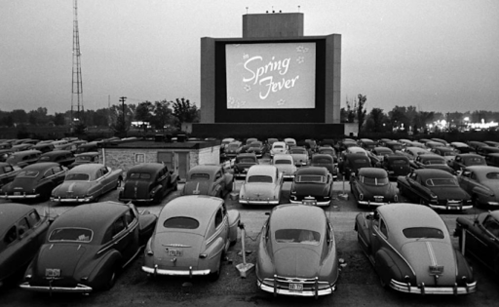 自理查德·霍林施德1933年在美国新泽西州创办了世界上第一家汽车影院,这种浪漫又新奇的影院形式很快随着汽车的普及风靡北美,到上世纪50年代,美国最多时共有4000家汽车影院。