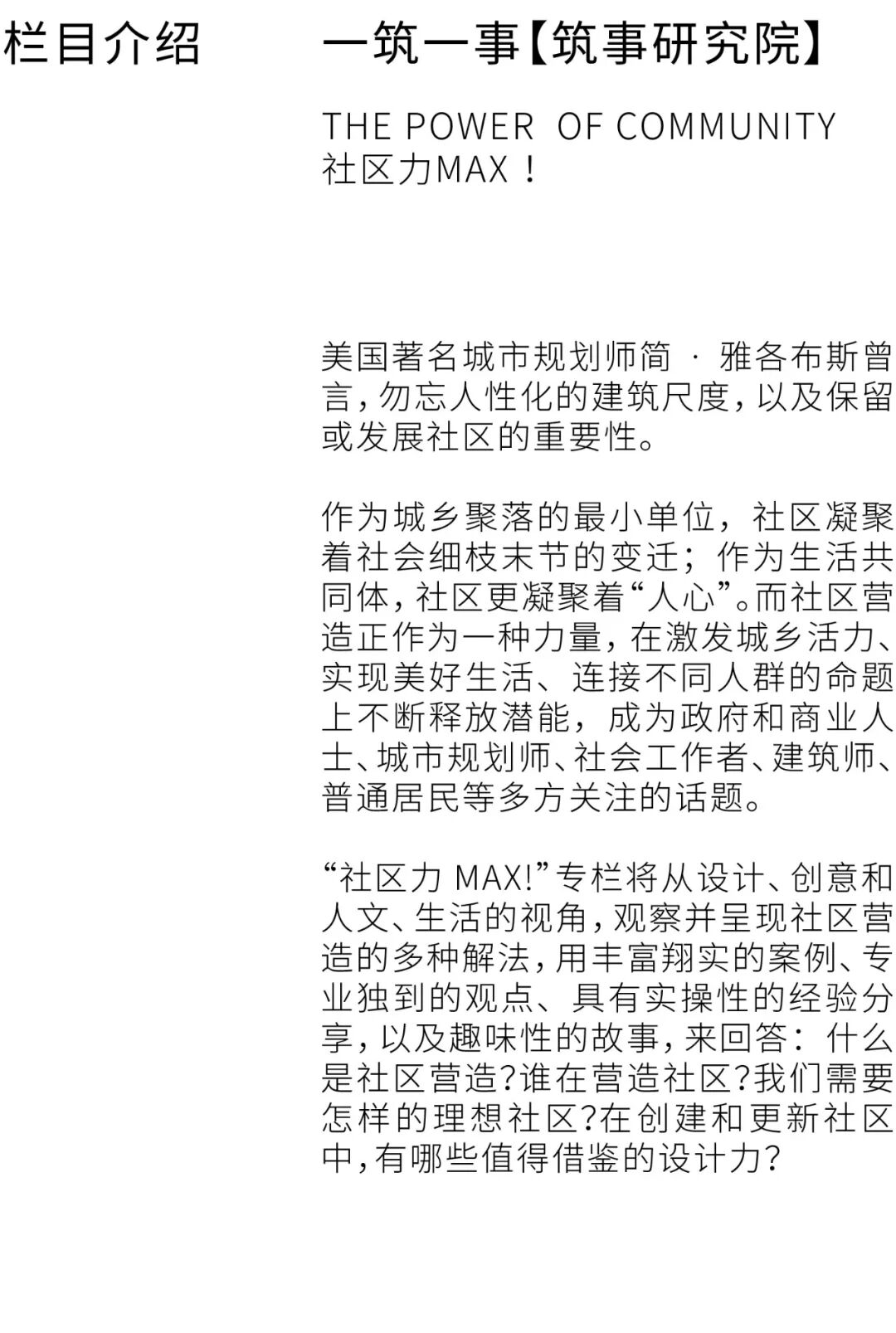 社区营造的确是个涉及建筑学、人类学、社会学等多学科的概念,一时也无法说清,但如果从那些实际的具体案例入手,或者可以较为轻松地了解什么是社区,以及,我们到底要营造的是什么。