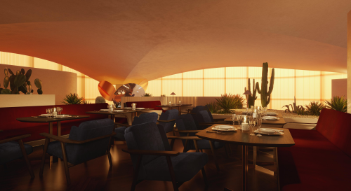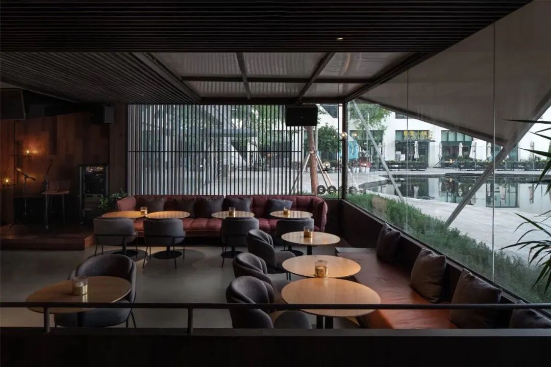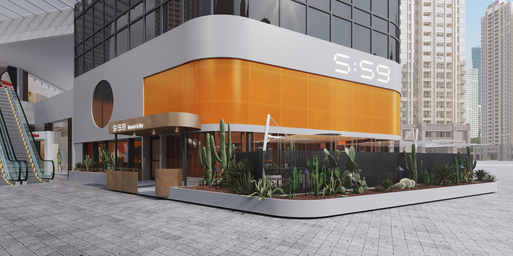 5:59落日餐吧是全时餐厅的有趣尝试。毛继军把新的业态和品牌放进空间和场地中,夕阳色彩元素搭配落窗玻璃,满足了视觉即时感,这种感觉回应到身体需求上来,激发美好情感的发生。