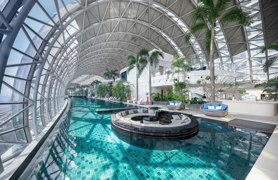 2020年,当我坐上广州瑰丽酒店的电梯,从一楼一跃来到95层的酒店大堂。这座530米高、108层的楼宇傲视群雄,是真正的云端酒店。酒店员工自豪地告诉我,2019年开业的广州瑰丽曾刷新过全球最高酒店的纪录。但它很快就被2021年开业、位于上海中心大厦里的J酒店超越了。