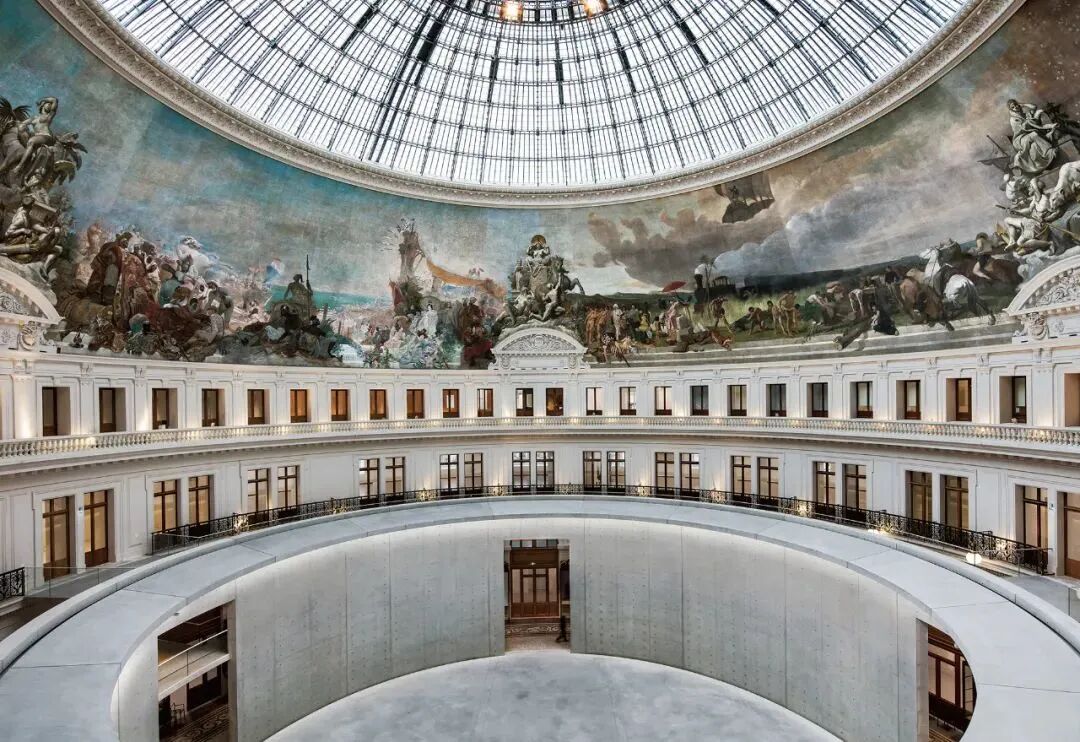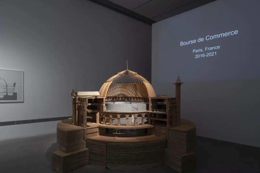 在巴黎证券交易所建筑中,安藤忠雄依然将新与旧的对话作为设计的主题,他在建筑物内部的圆形大厅中插入一个高10m、直径30m的圆筒形空间,从而形成一个大胆的嵌套状的空间结构。影像、模型的展示,细节精细的还原,让人可以用“上帝视角”去观看安藤忠雄用拿手的清水混凝土造出的具有张力的建筑空间。