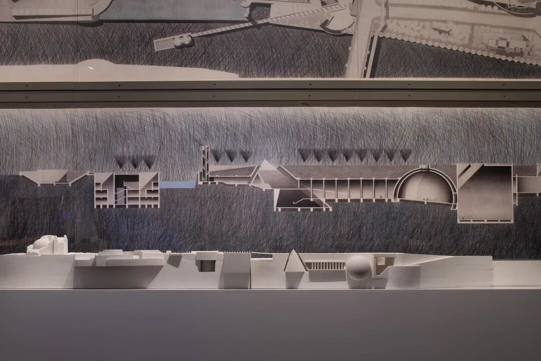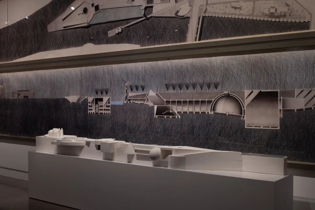 绘制于餐巾纸的手稿、酒店信纸的项目草案、巨幅素描、复杂而精致的庞大模型,让人不禁联想起安藤忠雄设计的现场。