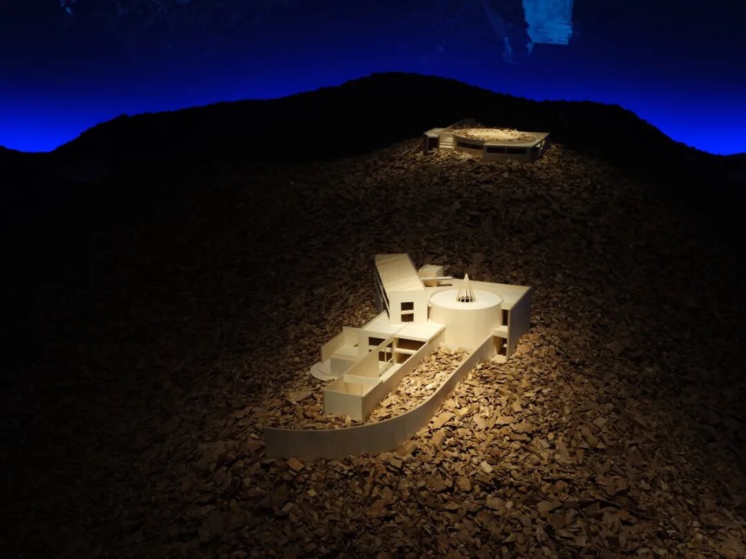 影片前面还创意地设置了一个“山丘”,用立体的形式再现了建筑所在的地理形貌,让人有沉浸式的体验。很有意思的是,直岛的建筑是在没有总体规划的情况下,根据具体情况依照特定步骤,慢慢推演而成,是一个慢慢生长的建筑。