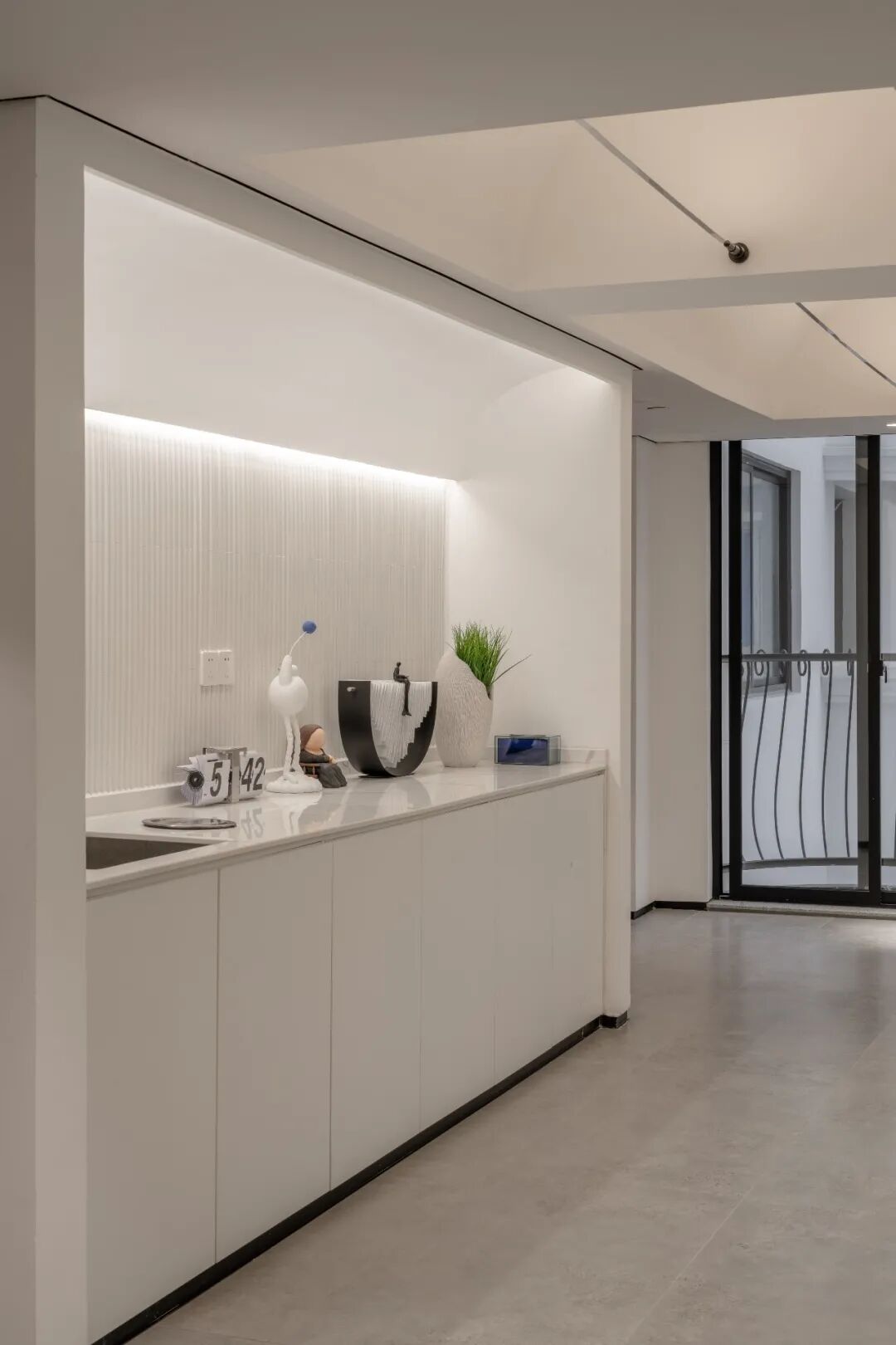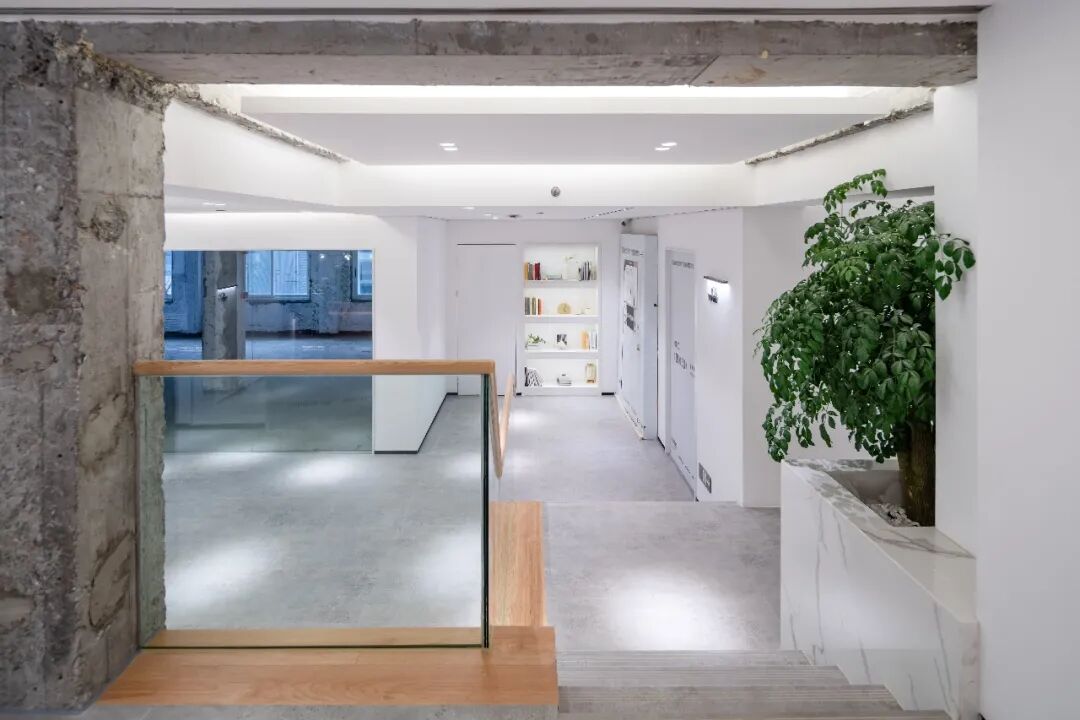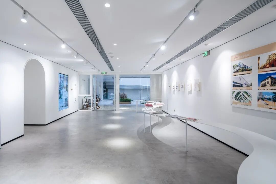 老旧大楼摇身一变成了纯白的海派洋楼,过去狭窄的出入口不见了,取而代之的是简洁又不失设计感的门面,玻璃材质的巧妙运用使空间通透明亮,拱形吊顶的设计让空间更具艺术性,整条街的“颜值”都提升了许多。