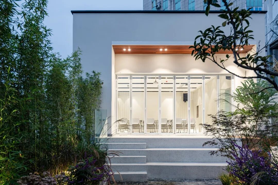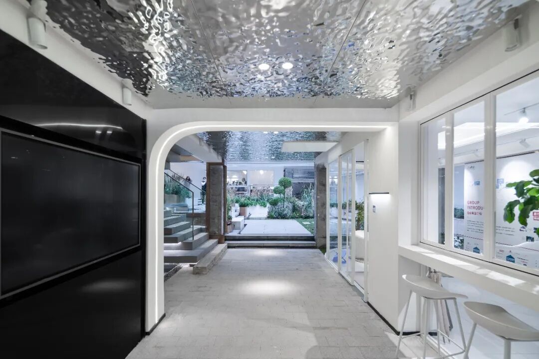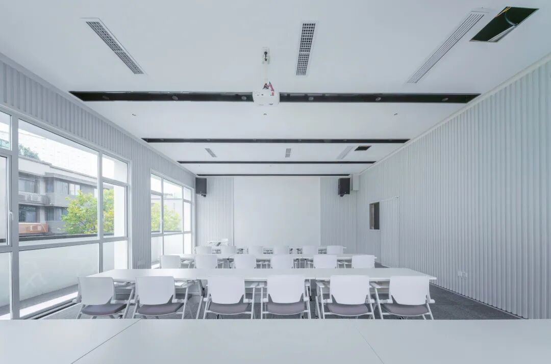 其中,最大的两个共享空间是一楼的流动艺术长廊,这里可以举办艺术展览或企业线下展示,以及五楼花园旁的文化会议中心,所有园区企业都能在这里预约会议或举办活动。