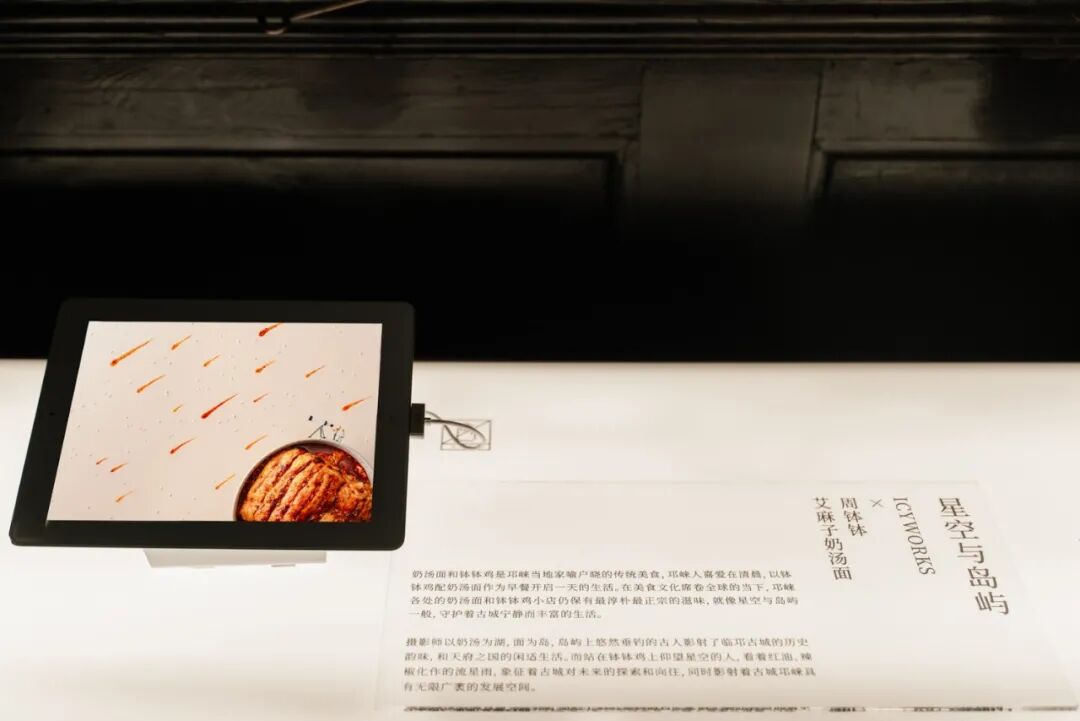 电视区和投影墙,让人们看到变动中的文脉巷。而在平板上,还可以查看新锐摄影师关于邛崃美食和老街生活的创意摄影。