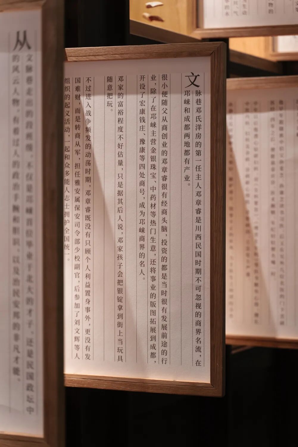 展厅通过挖掘本地特色文化,以文脉坊源远流长的文明为载体,段氏旧居展厅讲述了邛崃的前世今生、历史风云,呈现了一个古老但又生生不息的古城。