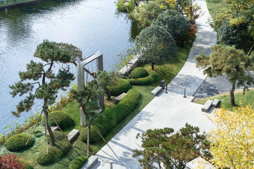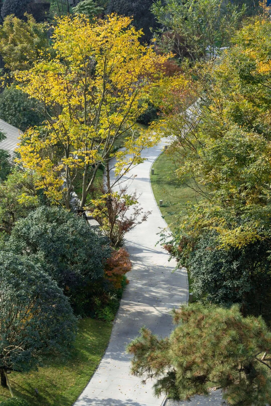 水给人们带来生机,也给建筑带来灵性。天府锦绣的“自在湖”以稻城亚丁牛奶海形状为灵感,松木青葱、水筑相映。