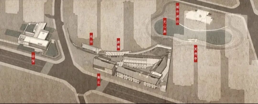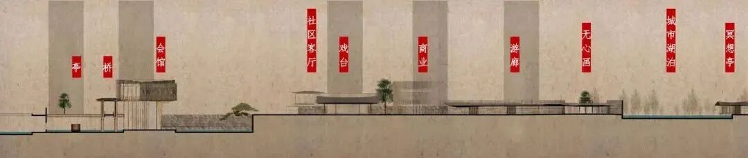 从锦绣会馆、绣里商街、锦绣长廊,到戏台、自在湖,它们均取法四川特有的建筑形态、文化、自然地理,经过现代手法的转译,不追求物质上的形似,而寻求神韵上的相通,以及情感上的共鸣。更重要的是,或曲折回环的路径、或由宽而窄的空间处理,让无形的时间在这里变得具体。