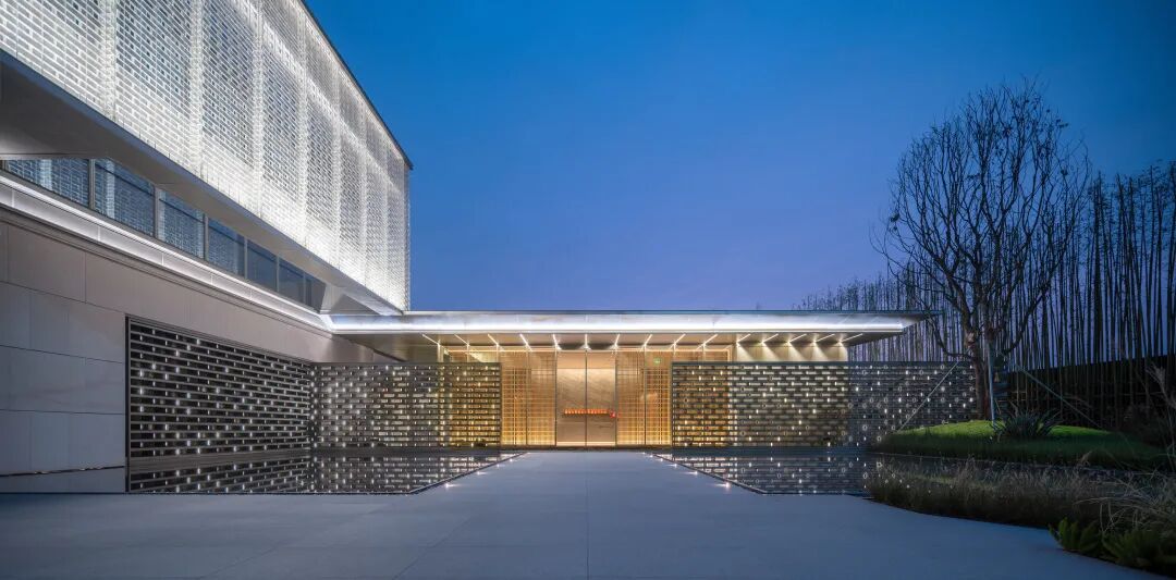 而与“绣里商街”相对而立的“锦绣会馆”,以千纸鹤的立体简约线条勾勒建筑基底,也以二层体量悬挑模拟传统建筑的屋顶,更以玻璃砖增加整个建筑的轻透质感。进门处静如镜面的水景,以“点睛之笔”的方式为整个建筑增加了神韵。