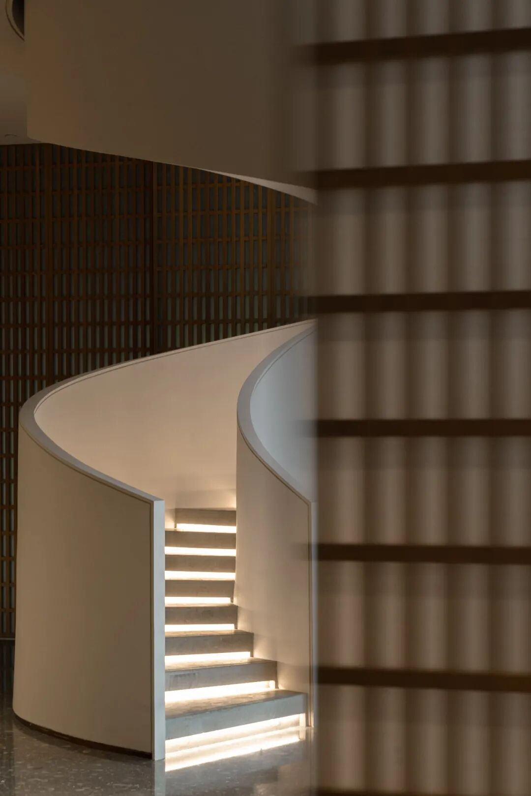 沿着旋转楼梯缓步而下,推开日式风格的推拉门,走入地下。层层递进而又绝不雷同的空间,让人深觉在欣赏一首回环往复的曲子,也像在品读一首重章复沓的诗歌。
