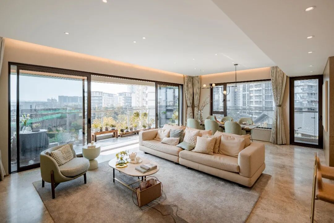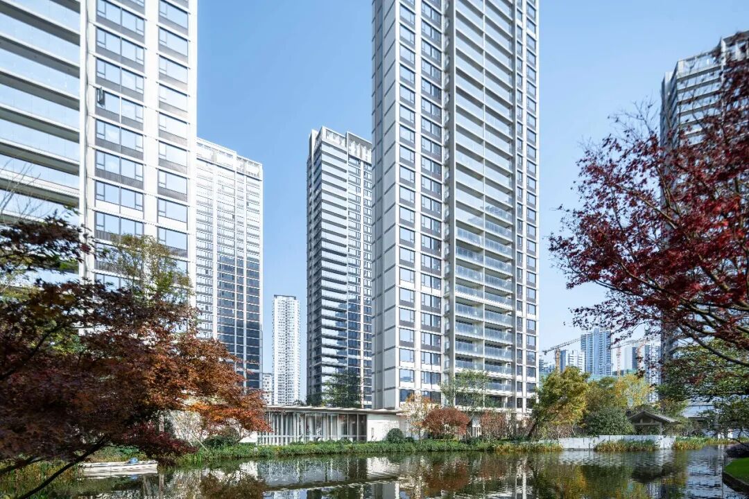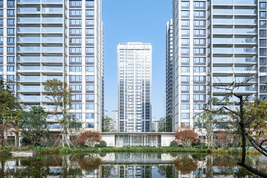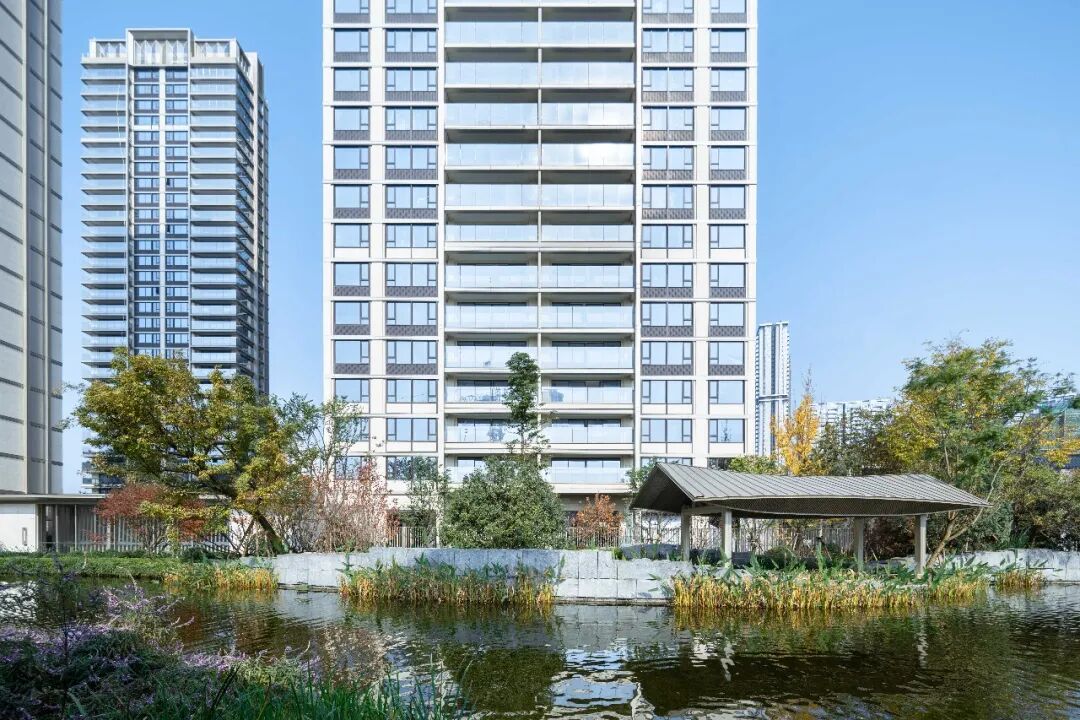 加上楼宅之间适度的距离,以及大面积的玻璃开窗,这里外可远眺风景、感受阳光雨露,内可安坐自己的方寸天地,“如水”般的宁静致远在城市可谓奢侈。