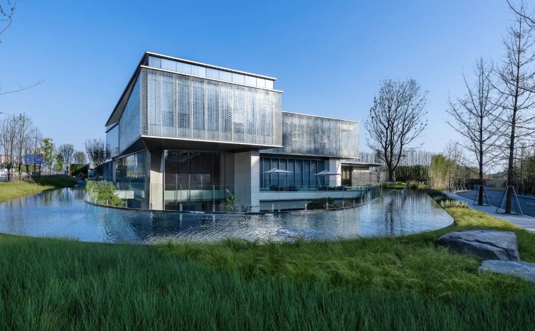 正如前文所言,日清设计确实像作画一样在描绘居所,呈现他们理想中的氛围。建筑外立面简约的线条,由点到线再到面,形同山水画那般兼具遒劲、疏朗的笔力,也形同锦绣经纬线的交织,勾勒出有节奏且灵动的外形。
