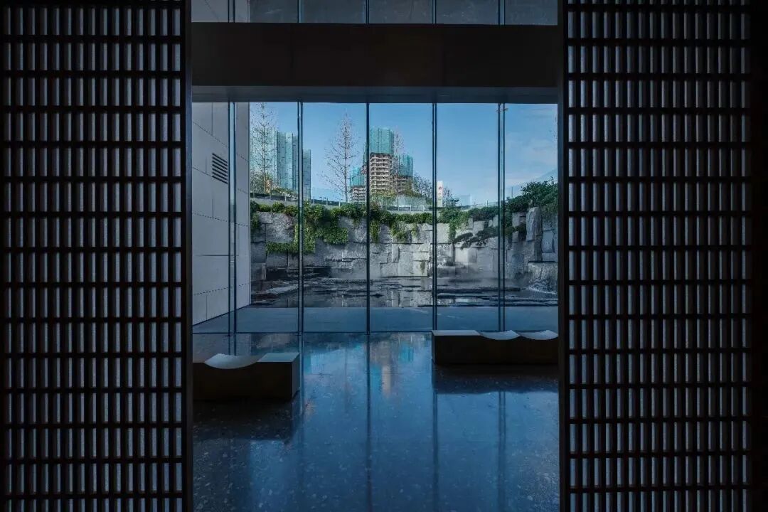 窗外的角落也自成天地,取法园林的设计,一松一石一水的构造,以特有的逻辑组合在一起,将山水带回到眼前,也引入人的内心——城市和自然在这里失去了界限。