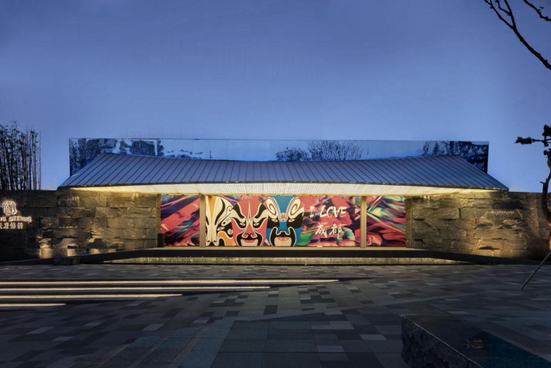 “戏台”是四川一种独一无二的文化符号,设计师从成都锦里戏台、黄龙溪万年台等数十个典型的戏台获得灵感,采用镜面成像原理,打造出了虚实相间的空间,形成亦真亦幻的妙境。
