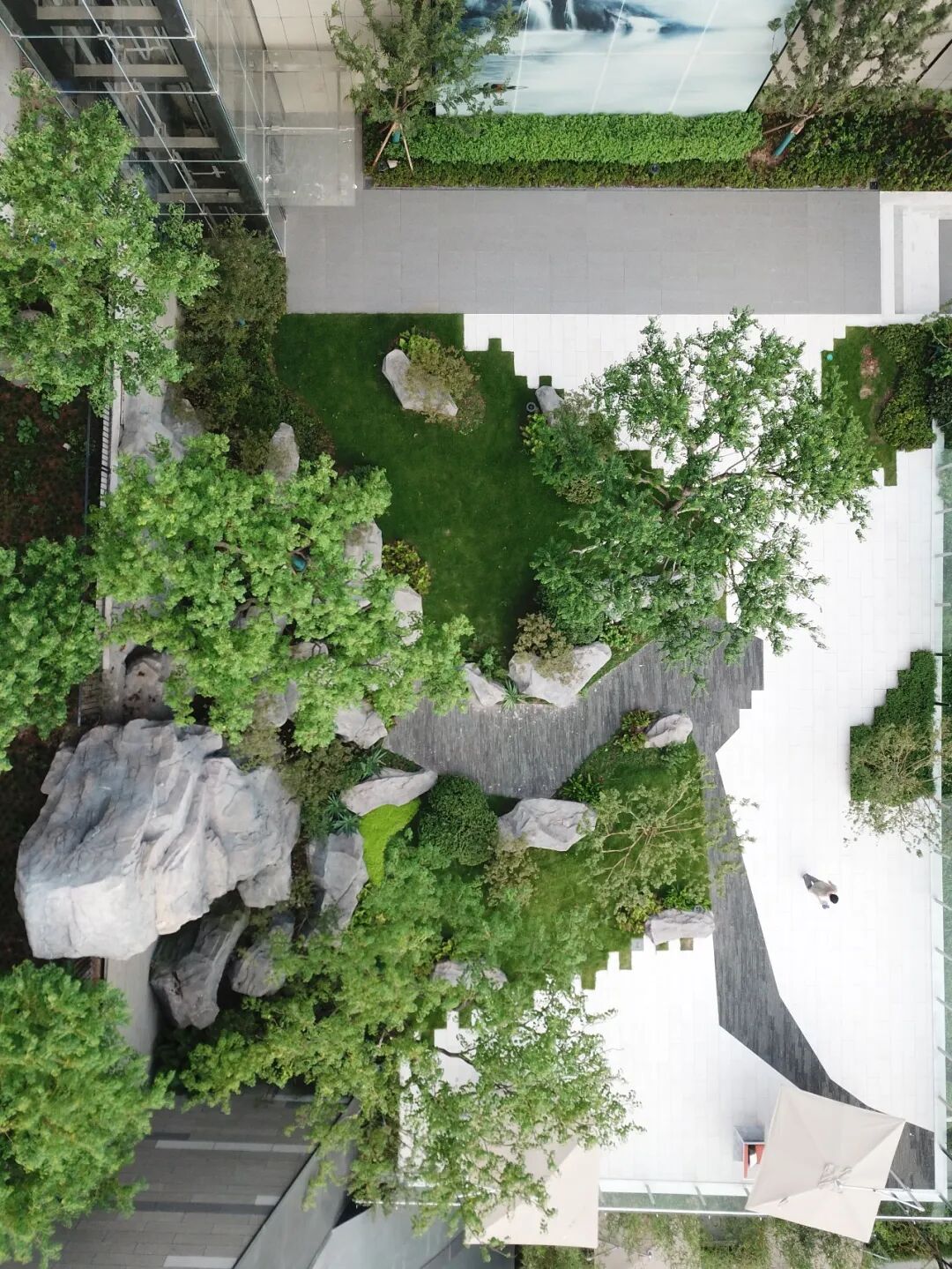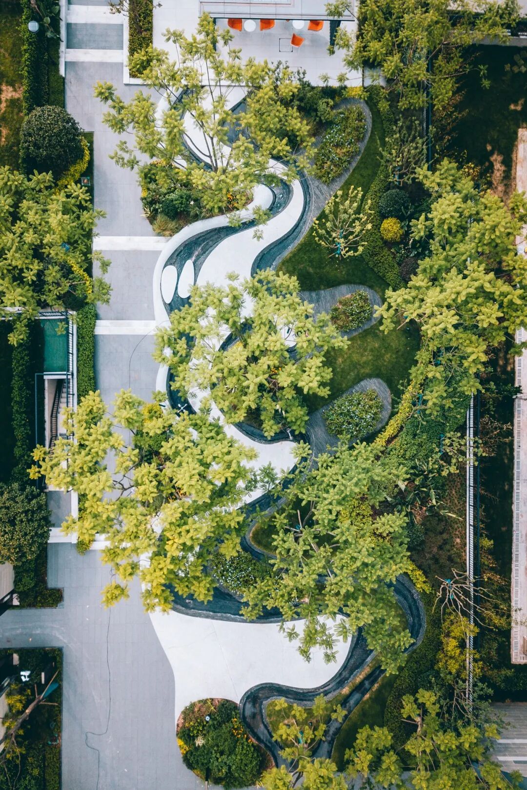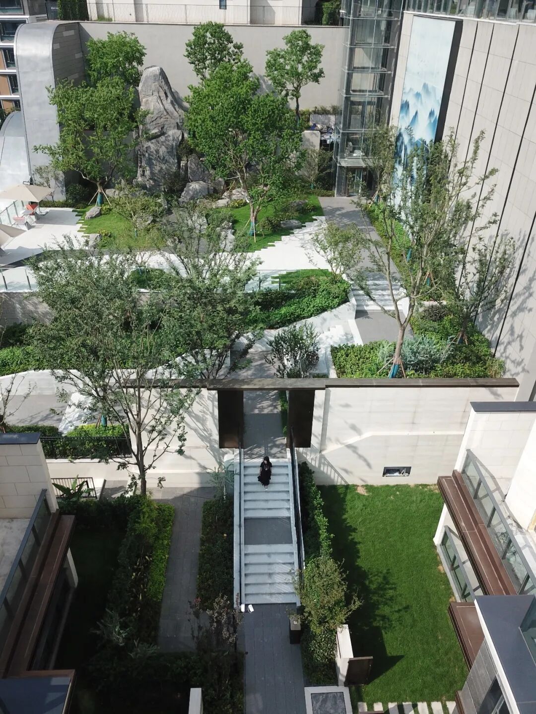 每栋建筑均带有约600平米的花园,院落四周种植了不同层次的乔木、樱花、紫薇、桂花等树木,它们将随着四季流转,呈现出斑斓的景观季相。