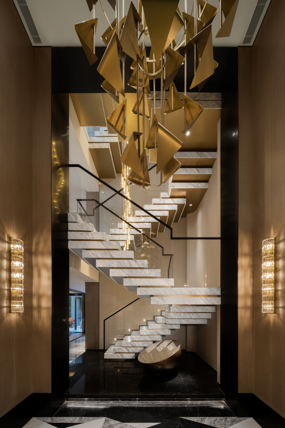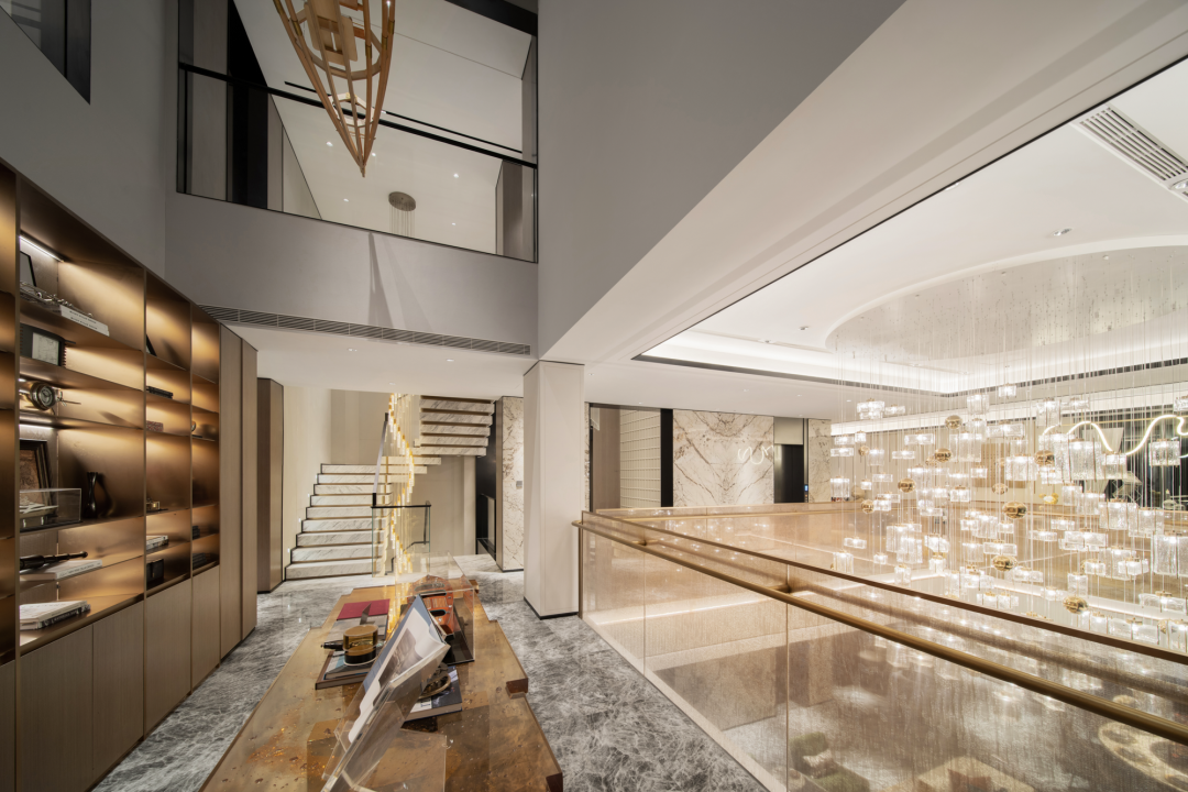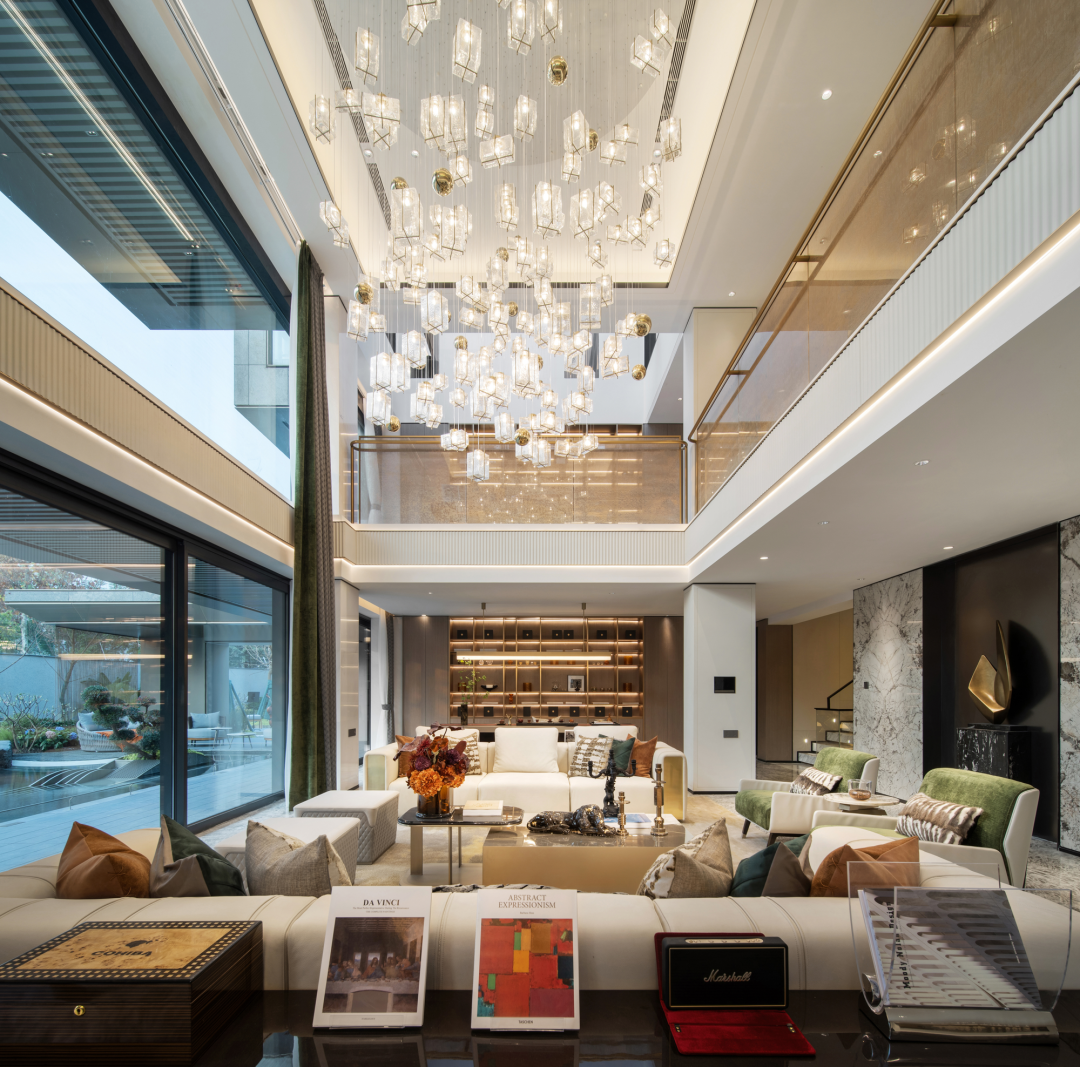 从建筑二层入门,下沉至起居空间。图片由香港置地提供