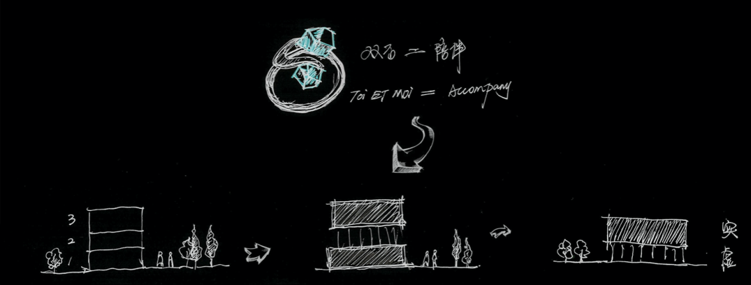 天湖屿的建筑设计灵感来自拿破仑御用设计师马利·艾蒂安·尼铎的“Toi Et Moi”双石戒指,将原本表达“相思”的两颗珠宝幻化为独栋外廓,诠释“家,即相伴”的内涵。