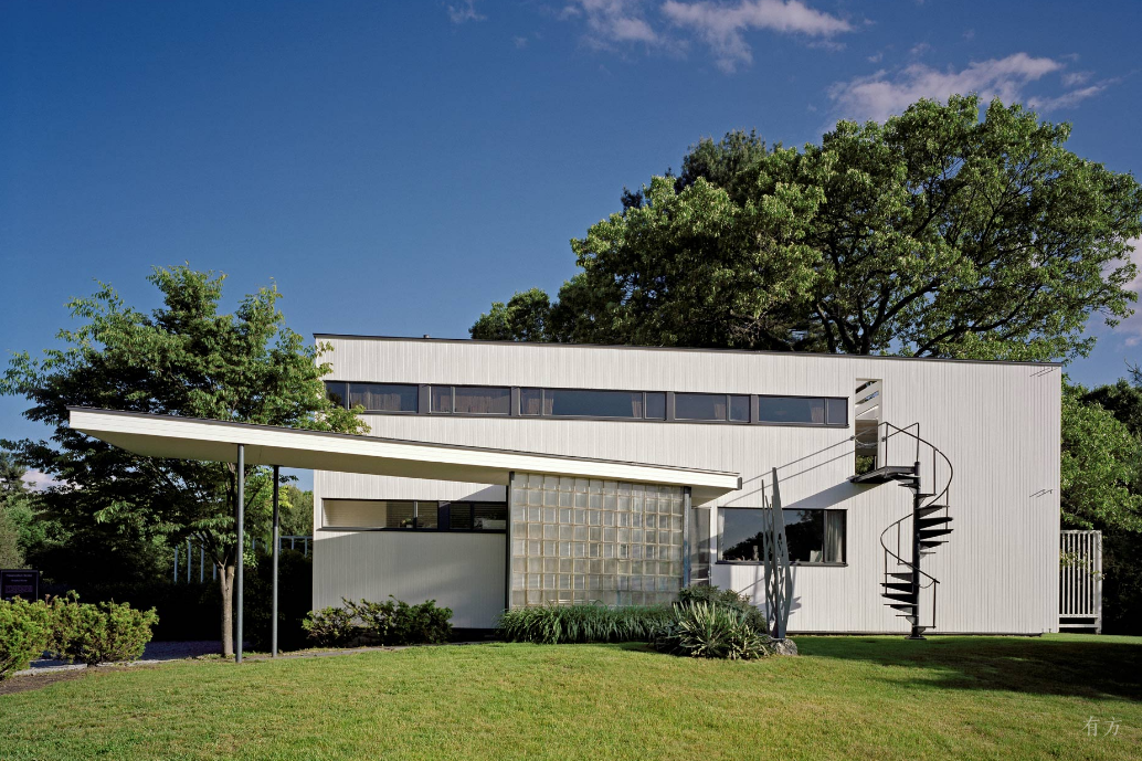 格罗皮乌斯的自宅是一座相当朴素的建筑。它保持了周边建筑的规模和与物质特征:房子的立面结合了普通的砖和当地的隔板,以及人造的带窗和玻璃砌块,唤起了一种新与旧、传统与现代、新英格兰与欧洲之间的稳定和平衡。图片来自网络