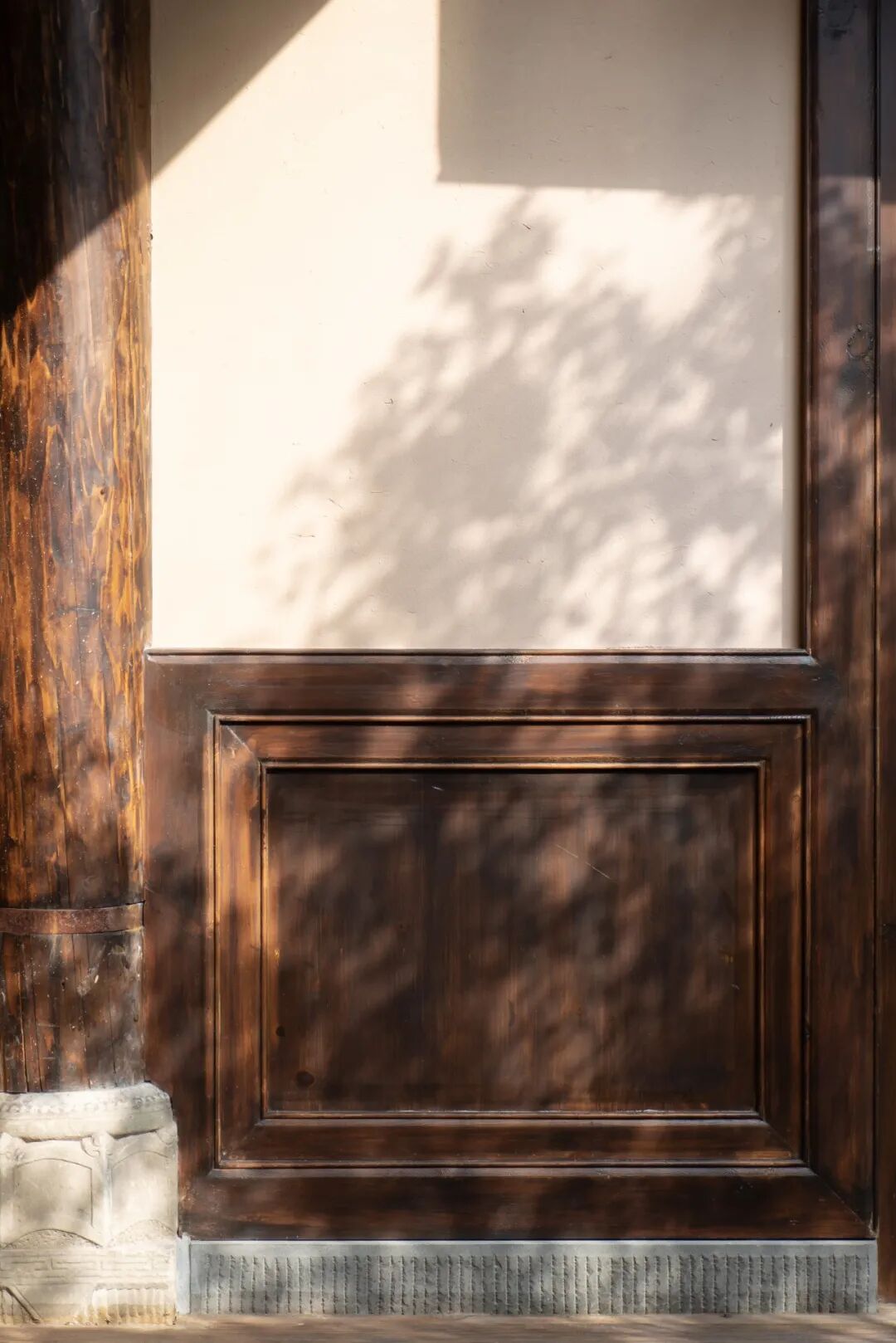 “首先想到的就是色彩的统一”——原来,华泰众城为每座院子的构件预设了一个色彩标准:老房子经年累月在主体框架大柱上留下的最深色,将每个院落的构件色彩与之尽量匹配。