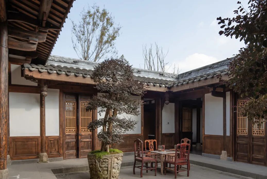 在以朴素民居为主的林盘建筑中,合院可谓是豪宅了,它们与宽窄巷子里的大院是同源的,都沉淀着百余年前那些大户府邸的精致与气派,也与这片区域“非遗院落”的定位相辅相成。